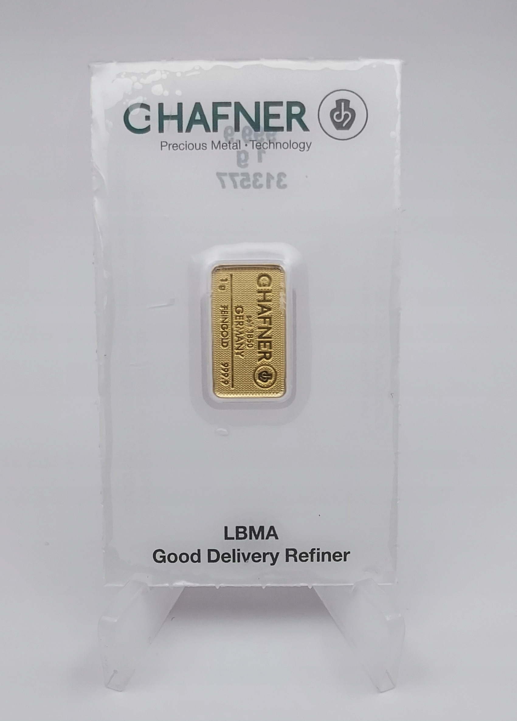 Золотий злиток 1 г C-Hafner, акредитація LBMA