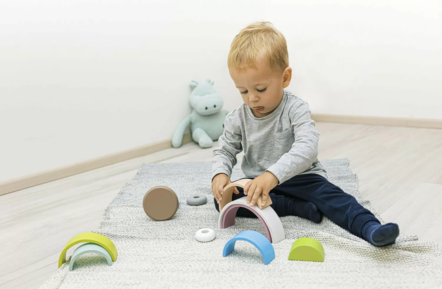 Симпатична іграшка веселкових форм і кольорів — чудовий інструмент для розвитку дитячої моторики, уяви та творчих здібностей. З пазлів можна скласти будь-яку форму. Набір містить 7 різнокольорових елементів з високоякісної деревини бука.
