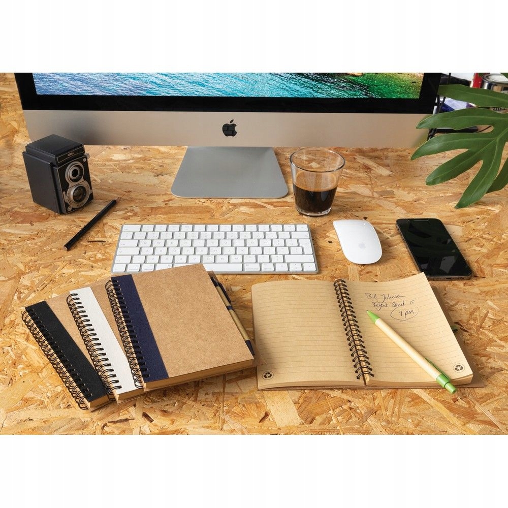 notatnik (70 кремових карт, виготовлених з паперового паперу 70 г/м2 у рядках), спіральна палітурна, кольорова ручка Kraft в наборі, німецький документ синім, 600 м