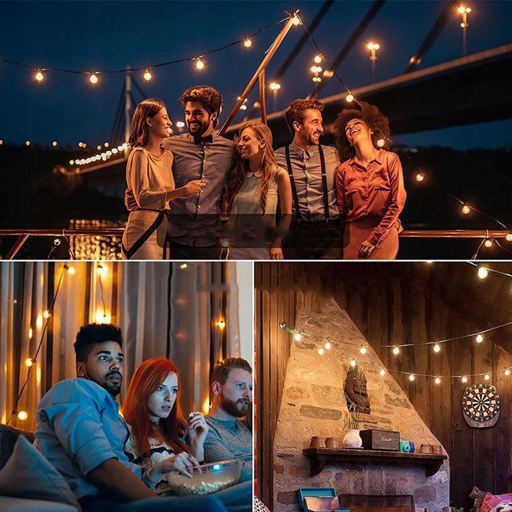 💡💡💡【 💡💡💡【 G40 Світлодіодні лампочки】: Завдяки великим лампочкам зовнішній струнний світло не легко зламається, якщо воно падає або підірве, як скляні лампочки. Вони також не впливатимуть один на одного, і ми забезпечили додаткові 3 запасні лампочки. Тривалість тривалості обслуговування понад 30 000 годин може зменшити витрати на технічне обслуговування при частому заміні лампочок.