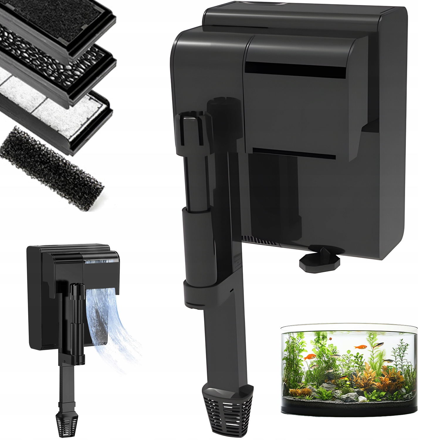 🐟-Його можна повісити за межами акваріума. Установка проста: просто додайте воду в резервуар фільтра та увімкніть живлення, щоб запустити насос. (Примітка: зменшення відстані між рівнем води та вихідним отвором до 0-2 см може зменшити шум потоку води.)