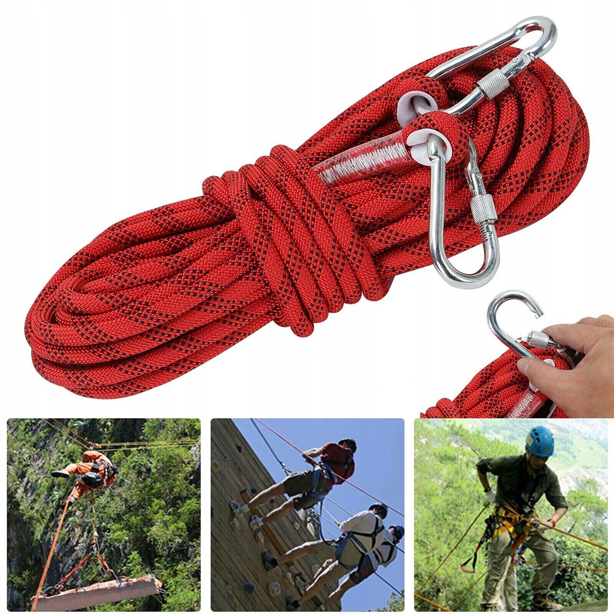 Східна мотузка 20 м 12 мм червона мотузка з 2 гвинтівками табору безпеки кави