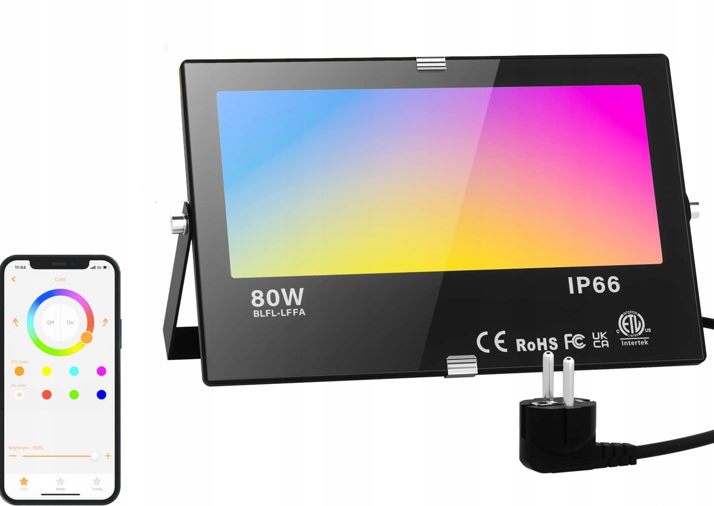 - Інтелектуальний світлодіодний прожектор LED RGB із керуванням Bluetooth пропонує мільйони кольорів на вибір, теплий білий RGB 2700 K. Ви можете змінити 12 динамічних режимів за допомогою програми. Проектор 80 Вт, затемнений, 8000 лм, Cri 85, підходить для використання на вулиці.