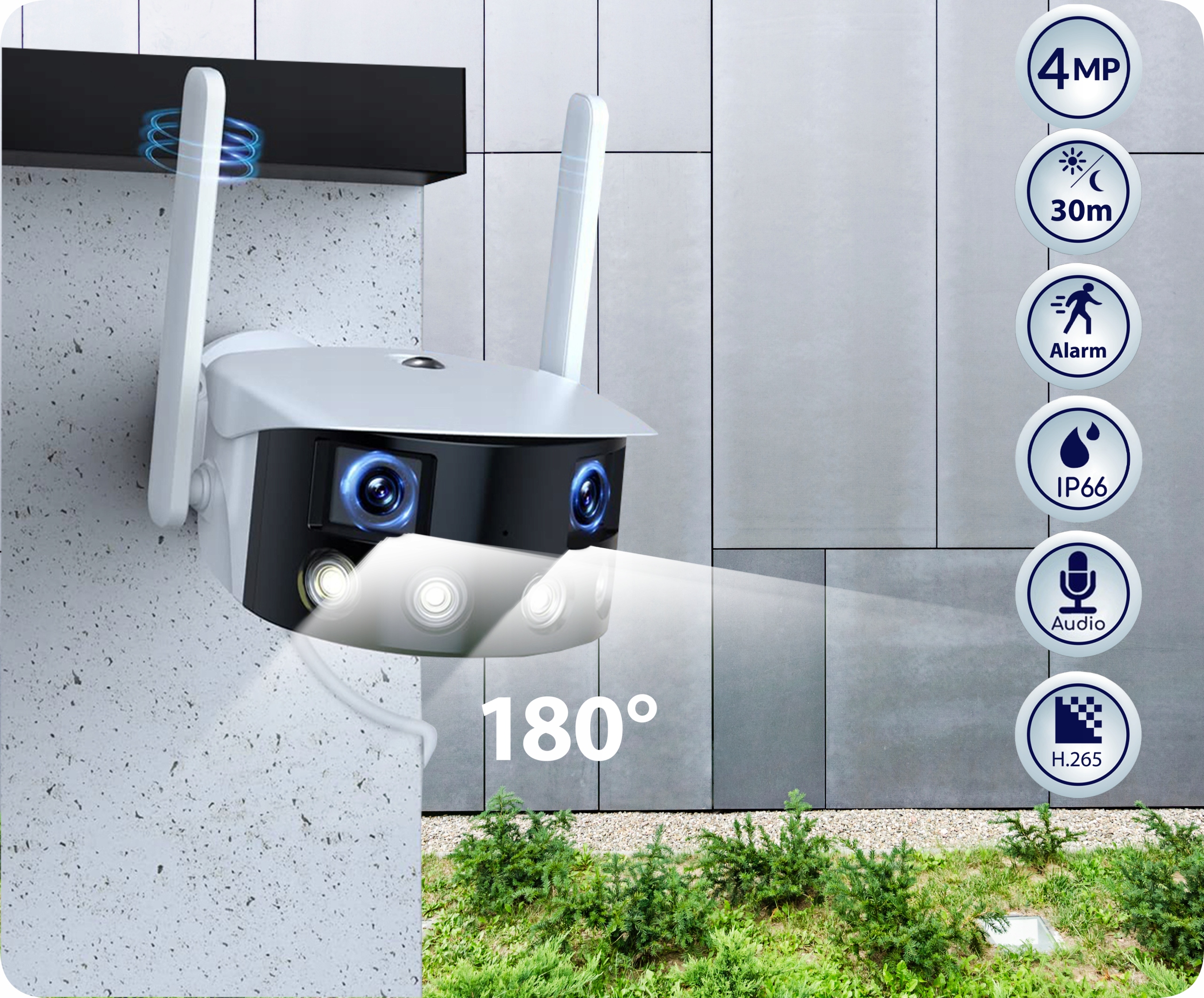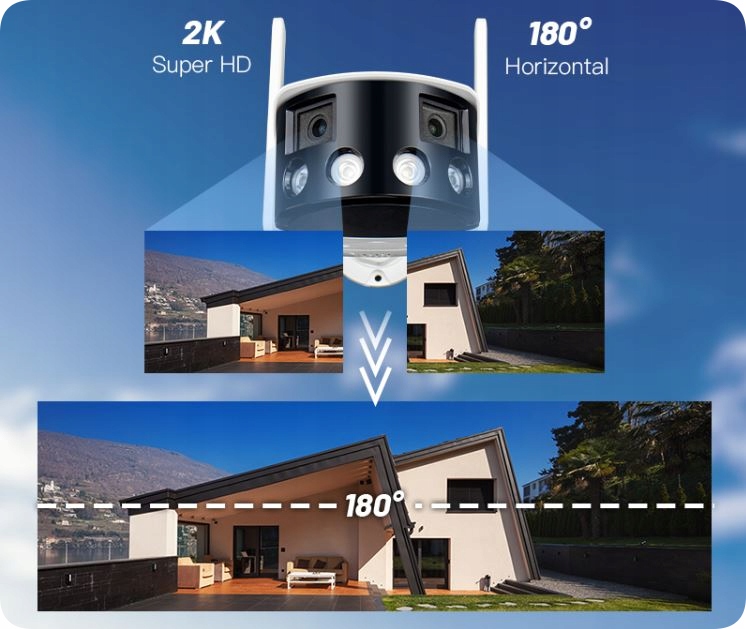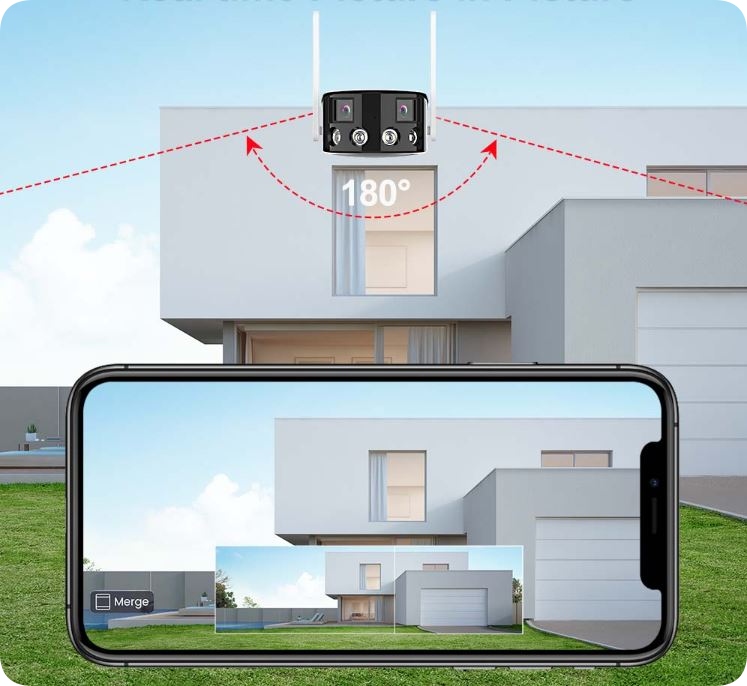 Камера WIFI з двома лінзами дає гарне широке зображення із загальною роздільною здатністю 4mpx! Він має сучасний, приємний для ока корпус і підходить для встановлення як всередині, так і зовні будівель, а також для цілодобового спостереження.
