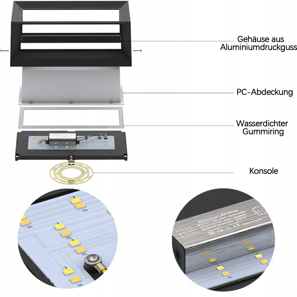 ✅ 【Високоякісна водостійкість】 IP65 Властивості стійкості до погоди змушують це працювати в будь -якій ситуації. Підходить для використання зовні та у складних погодних умовах. Вся настінна лампа виготовлена з чистого алюмінію і має міцну обробку вагою 2,4 фунта. Якщо ви покладете їх на стіни, стовпи, дерева чи капюшони, вам не доведеться турбуватися про пошкодження.