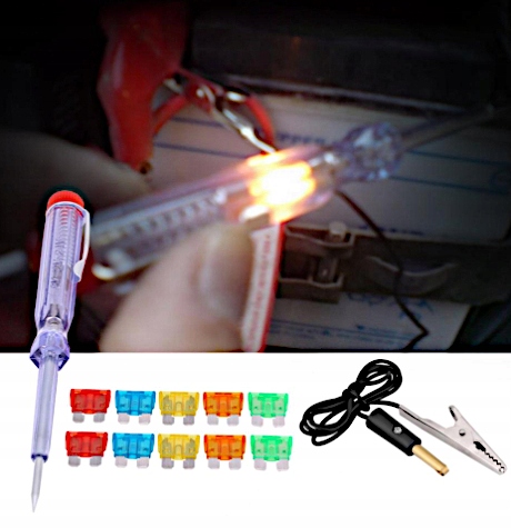 Щоб засвітилась неонова лампа, під’єднайте один кінець тестової лампи до заземлення в машині, а до іншого під’єднайте пробірку до запобіжника. Якщо тестований елемент знаходиться під (відповідною) електричною напругою, неонова лампа почне світитися.