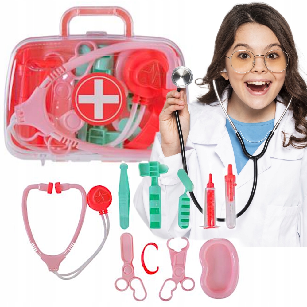 ЗРУЧНИЙ ДОКТОРСЬКИЙ НАБІР У ВАЛІЗІ МАЛЕНЬКИЙ ДОКТОР ДОКТОР СТЕТОСКОП РОЖЕВИЙ