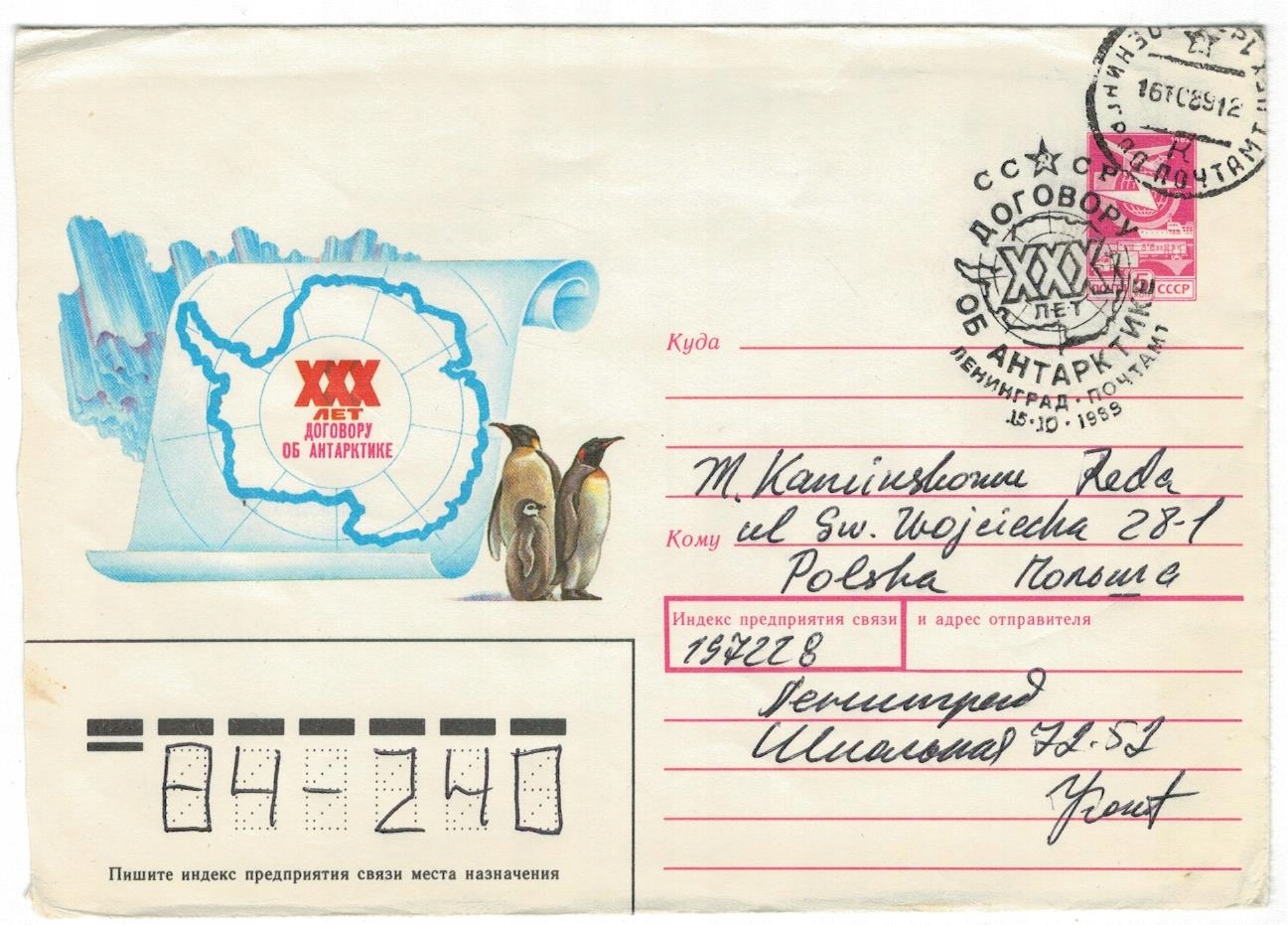 ZSRR 1989 Koperta Ck datownik Antarktyda pingwiny