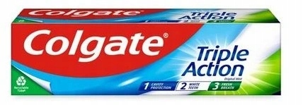 Спеціальні частинки в пасті ефективно очищають міжзубні проміжки, усуваючи залишки їжі та бактерії, що додатково підтримує здоров'я ясен. Використовуючи зубну пасту потрійної дії Colgate, користувачі можуть розраховувати на: