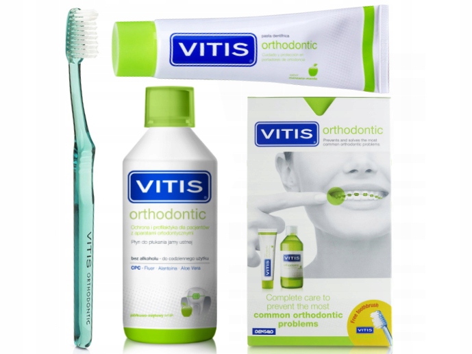 VITIS Orthodontic Original Pack — це повний набір продуктів, створений спеціально для людей, які носять ортодонтичні брекети. Набір містить три основні продукти : рідина для полоскання рота ємністю 500 мл, зубна паста ємністю 100 мл і зубна щітка, розроблена з урахуванням потреб людей з ортодонтичними брекетами.