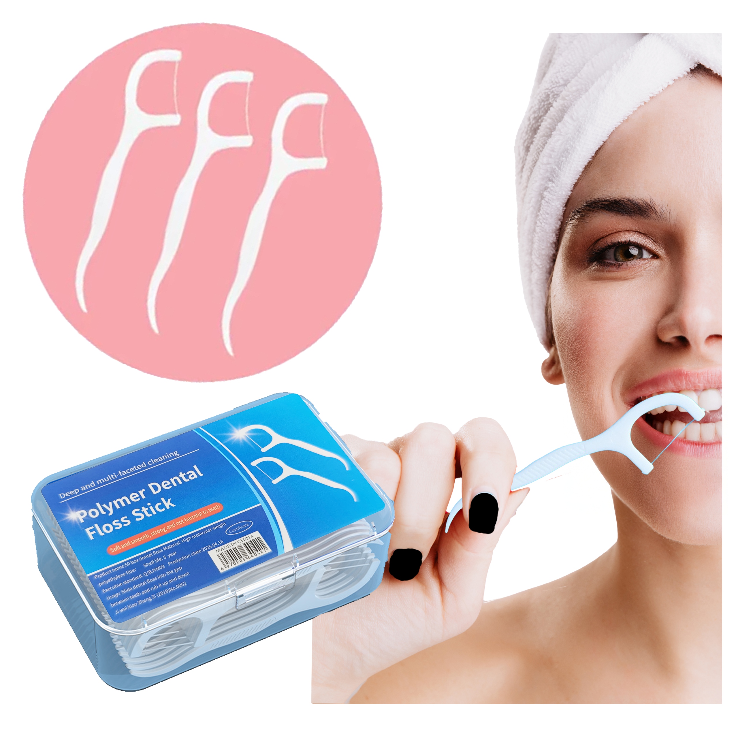 ЗУБНІ НИТКИ FLOSS ЗУБОЧИСТКИ НА ПАЛИЧЦІ З ПАЛИЧКОЮ 50ШТ