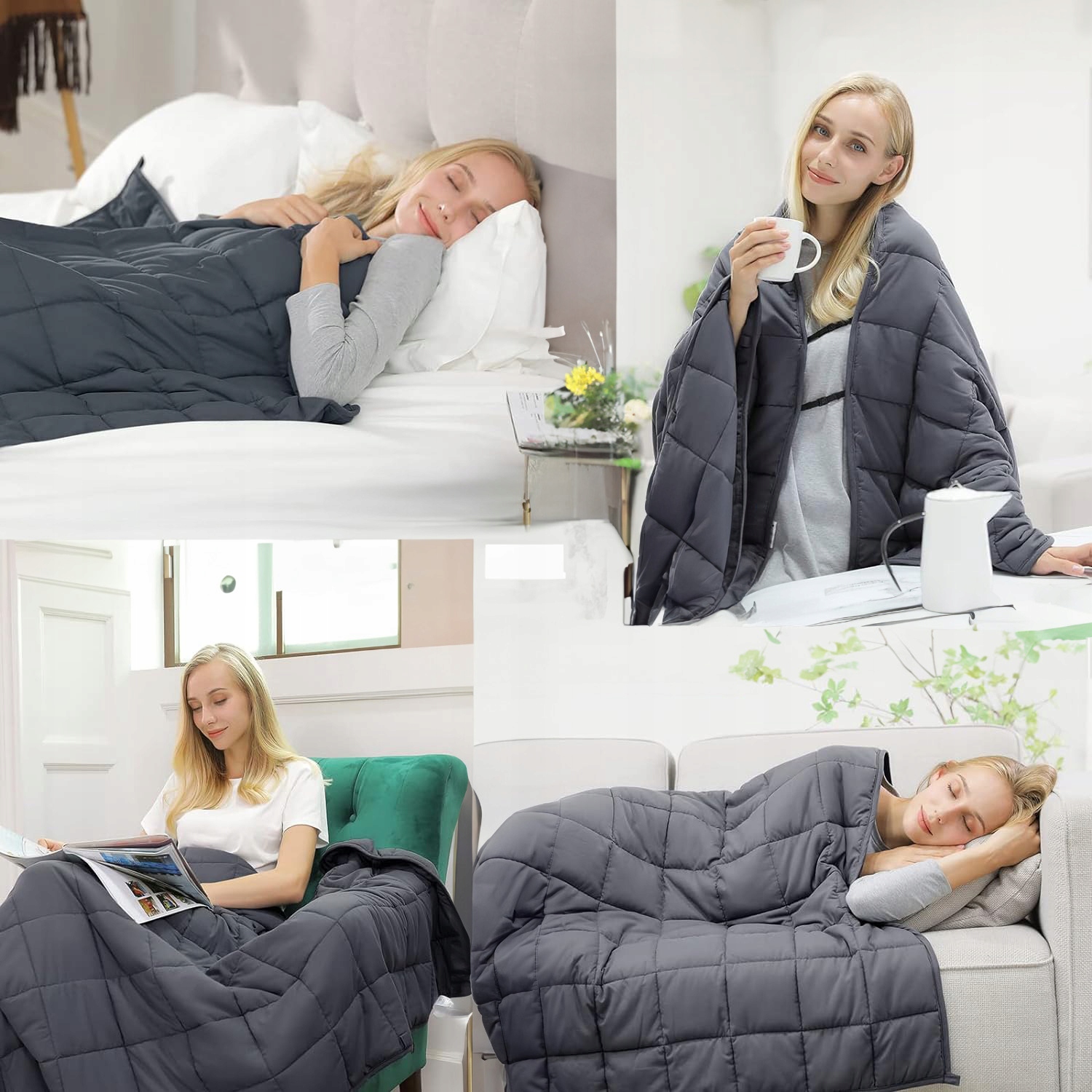 Ковдра з обважненням — це ефективний спосіб покращити якість сну та зменшити стрес. Прокидаючись бадьорим після нічного сну під обтяженою ковдрою, ковдра обіймає ваше тіло та створює приємний тиск.