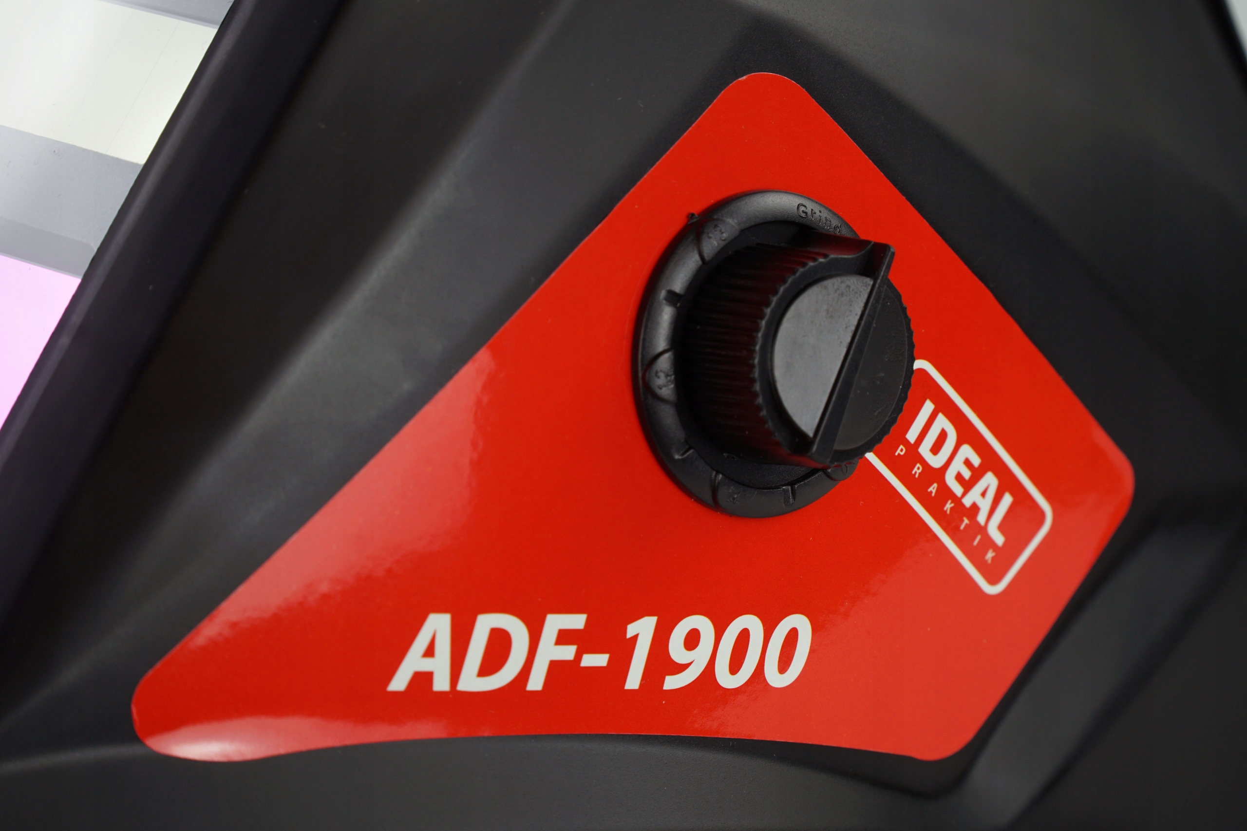 Зварювальна маска ADF-1900 має регульований рівень захисту в діапазоні DIN 4/9 -13 b>, змінний час освітлення і можливість установки чутливості датчиків. Призначений для MIG/MAGі MMA зварювання. Крім того, він також оснащений функцією шліфування.