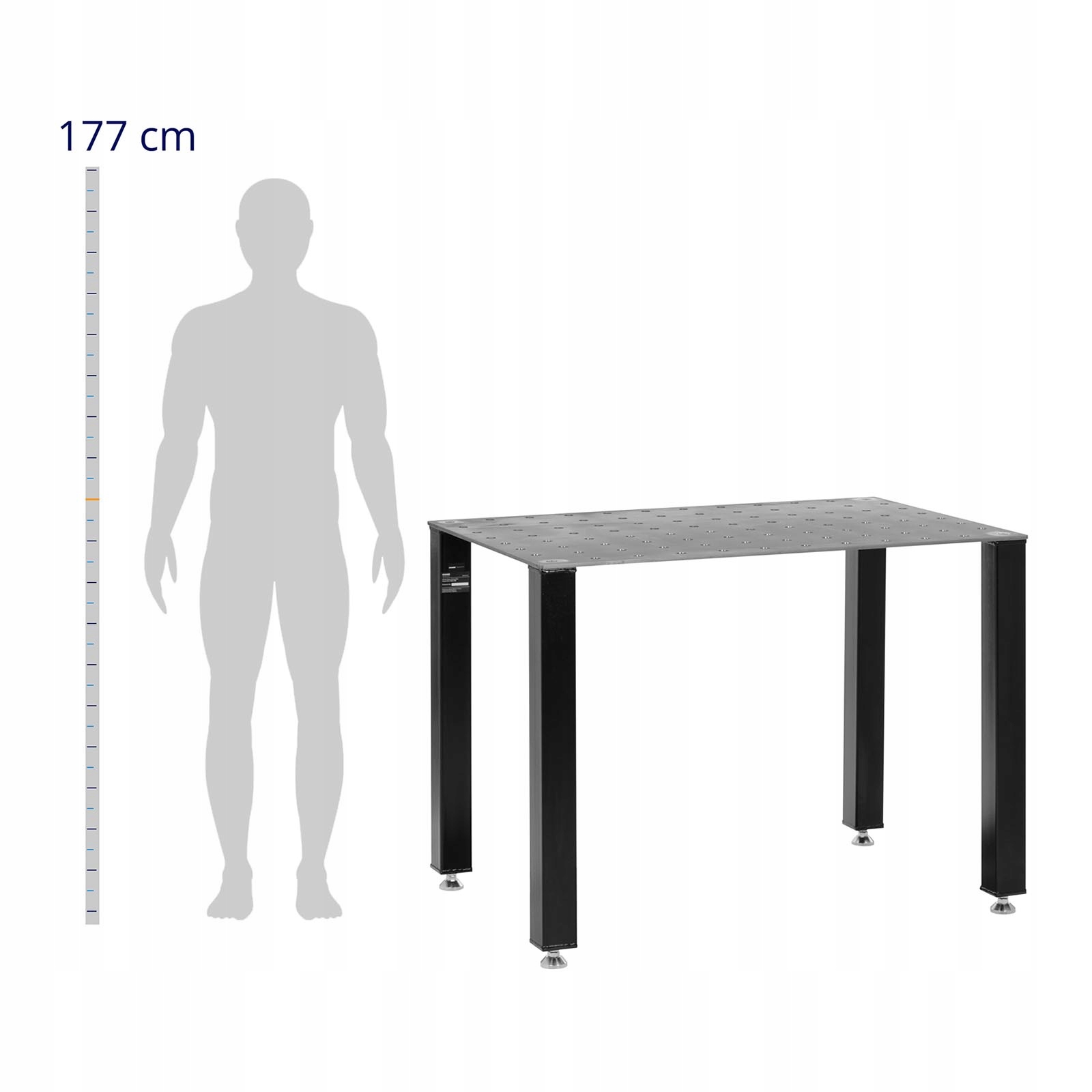 Перфорована сталева пластина встановлена на чотирьох надзвичайно міцних ніжках розміром 80 x 80 мм. Міцний зварювальний стіл із міцної вуглецевої сталі не хитатиметься та не хитатиметься навіть під час зварювання на повній потужності чи переміщення заготовки. Разом зі столом ви отримуєте надійну основу для всіх зварювальних робіт.
