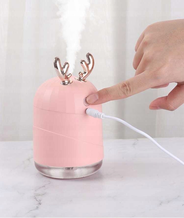 Якщо ви шукаєте зволожувач повітря з незвичайним дизайном, Pearly саме для вас! Приємні пудрові кольори корпусу та золотисті оленячі роги роблять пристрій захоплюючим своїм зовнішнім виглядом.