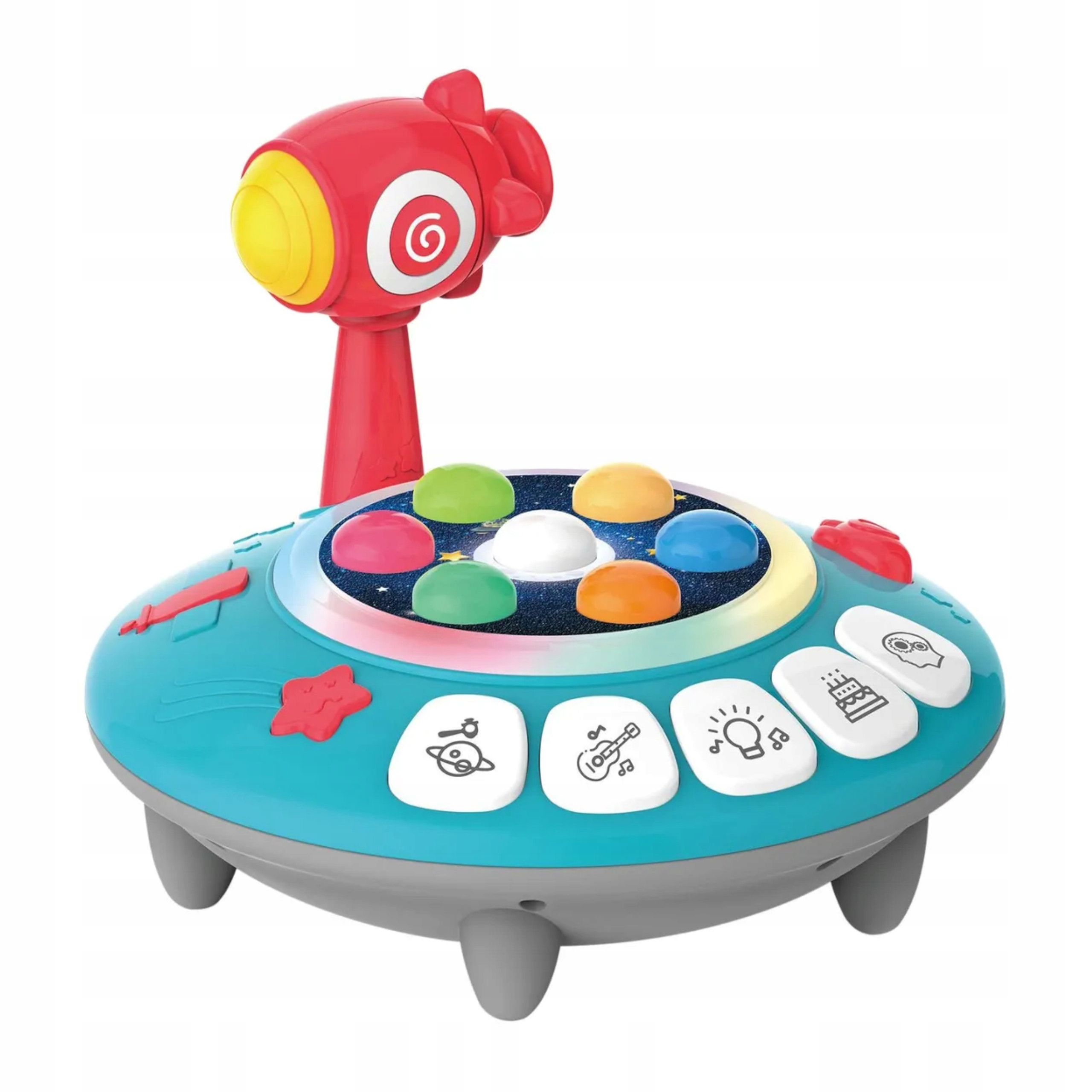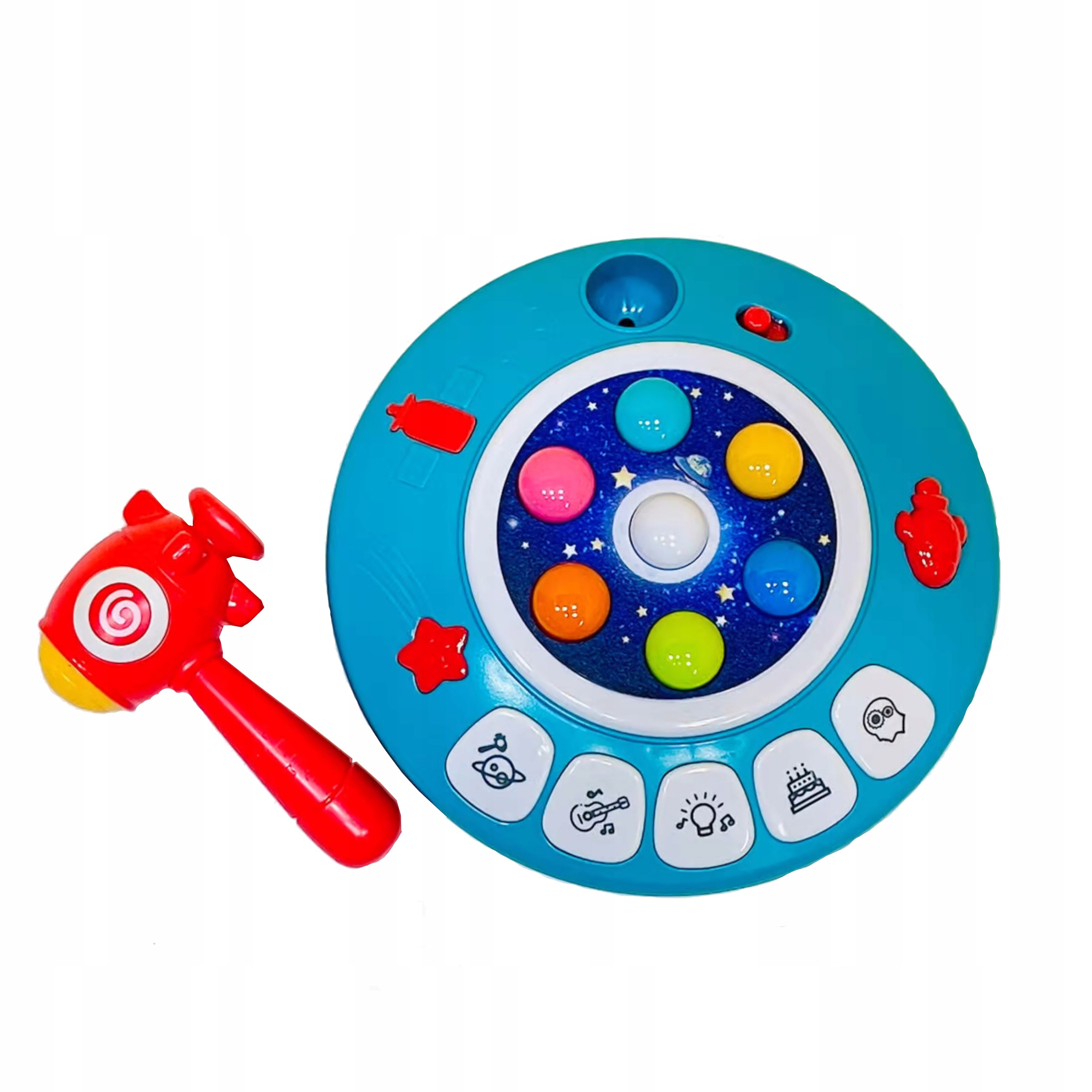 - Аркадна гра «Доджбол» «Насолоджуйтесь звуками космічного корабля» Гра «Насолоджуйтесь космічним кораблем» — це ідеальна іграшка, яка розвиває ручні навички вашої дитини та сприйняття рук. відносини. Іграшка призначена для дітей від 18 місяців. Цікавий візерунок космічного корабля і красиві кольори додатково привернуть увагу вашої дитини Розміри упаковки: 23 x 20 x 8,5 см. Розміри іграшки: Діаметр: 20,5 см. Висота: 7 см. Діаметр кольорових пуансонів: 2 см. Розміри молотка: 13 x 7.5 x 4.5 см. Батарейки : 3 x AA (не входить в комплект) Вік: 18 м + Іграшка має сертифікат EN71, CE. У набір входить: Насолоджуйтесь ігровим космічним кораблем. Функції молотка: гра передбачає натискання молотком на маленькі кнопки, які підсвічуються в певний момент. Гра починається після перемикання кнопки ON/OFF. Космічний корабель має двоступеневе регулювання гучності, що робить іграшку приємною на слух і для дорослого, який супроводжує гру. Відразу після включення іграшки нас вітає весела, жвава мелодія, розвивайте мануальні навички і пам'ять дитини, вчіть її проходити всі рівні складності! Дошка має 7 шт Красиві різнокольорові кнопки, які підсвічуються по черзі, і по них потрібно бити молотком, є спеціальне місце для зберігання молотка, і іграшка має три кнопки з мелодіями: у формі космічного корабля, у формі пляшки та у формі зірки. Після натискання кнопки корабля ми почуємо пісню, яка виконується англійською. Коли пісня продовжується, кнопки по черзі світяться, а щит навколо кнопок блимає. Наступна мелодія викликається повторним натисканням кнопки. Після натискання зірочки на піаніно звучить короткий музичний твір. Цей ефект супроводжується чергуванням світла на ободі кнопок. При натисканні на пляшку ви почуєте 3 заспокійливі мелодії. Під час відтворення мелодії кнопки та обідок заспокоюють по черзі. Наступна мелодія викликається повторним натисканням кнопки. Крім того, космічний корабель має 5 кнопок, кожна з яких активує окремий режим: кнопка з планетою та молоточком активує режим, у якому дана кнопка світиться, і дитина повинна натиснути на неї відповідним чином. Якщо ми правильно натискаємо 15 кнопок, лунає мелодія, яка нас винагороджує. Однак, якщо ми пропустимо чотири кнопки поспіль, ми почуємо короткий звук, який вказує на несправність. Кожного разу відповідний звук вказує, потрапили ми в потрібний колір чи ні. Після виграшу або програшу гра відновлюється - ви можете грати нескінченно! Кнопки підсвічуються, і їх натискання додає ефект гітари. Завдяки цьому ваша дитина легко засвоїть основи ритму. Наприкінці, коли ваша дитина грає свою версію мелодії, гра пропонує гарне рішення, щоб дитина могла вчитися на своїх помилках. Неправильне натискання клавіші призводить до того, що ми чуємо мелодію з самого початку. Звуки супроводжуються світяться обідком з лампочкою, який активує режим веселої музики, в якому кнопки і обідок світяться по черзі. У цьому режимі ми просто слухаємо 2 веселі мелодії, а четверта клавіша з зображенням торта активує 2 популярні мелодії. У цьому режимі також підсвічуються кнопки і обідок. Щоб запустити другу мелодію, потрібно ще раз натиснути останню кнопку з головою. Спочатку гра показує нам 1 кнопку, і ми повинні натиснути її молотком. Гра показує нам два режими: в першому ми приходимо