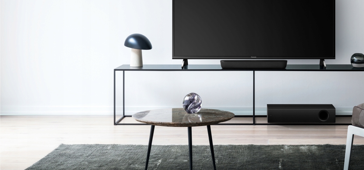 Завдяки компактному корпусу пристрій легко поміщається між ніжками телевізора - просто розмістіть його та насолоджуйтеся ідеально інтегрованою формою. Завдяки простій, але елегантній вигнутій формі пристрій підходить до будь-якого телевізора. Тонкий сабвуфер можна встановити вертикально або горизонтально. Якщо його встановити горизонтально, його також можна розмістити на підставці під телевізор.