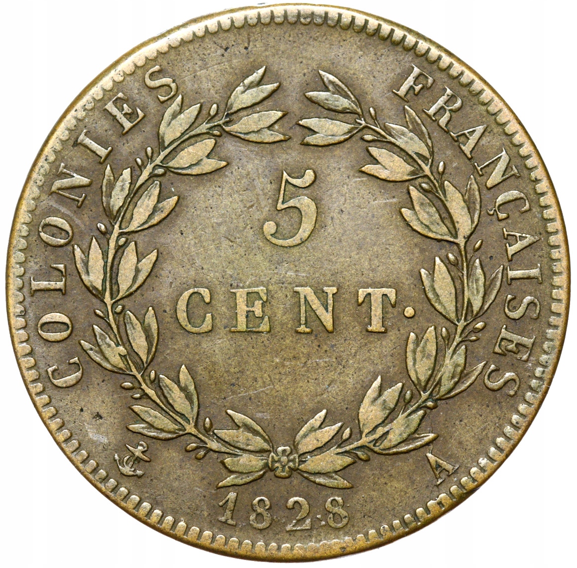 + Франция - Колонии - Гайана - Карл X - 5 сантимов 1828 г. A - РЕДКОСТЬ!
