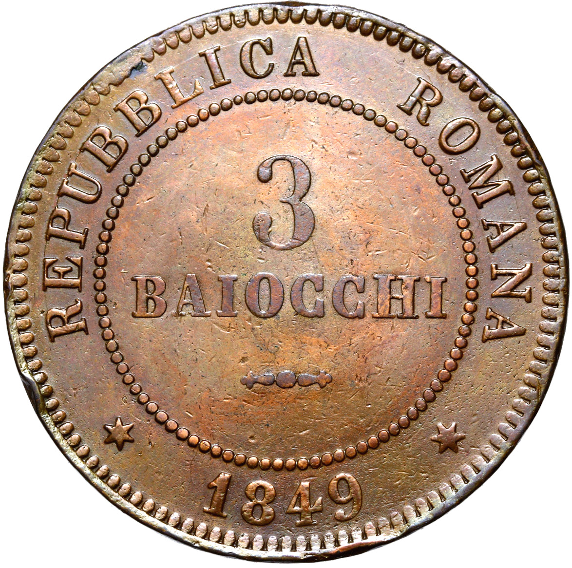+ Италия - Римская Республика - 3 Байокки 1849 г. - Рим - ГОСУДАРСТВО!