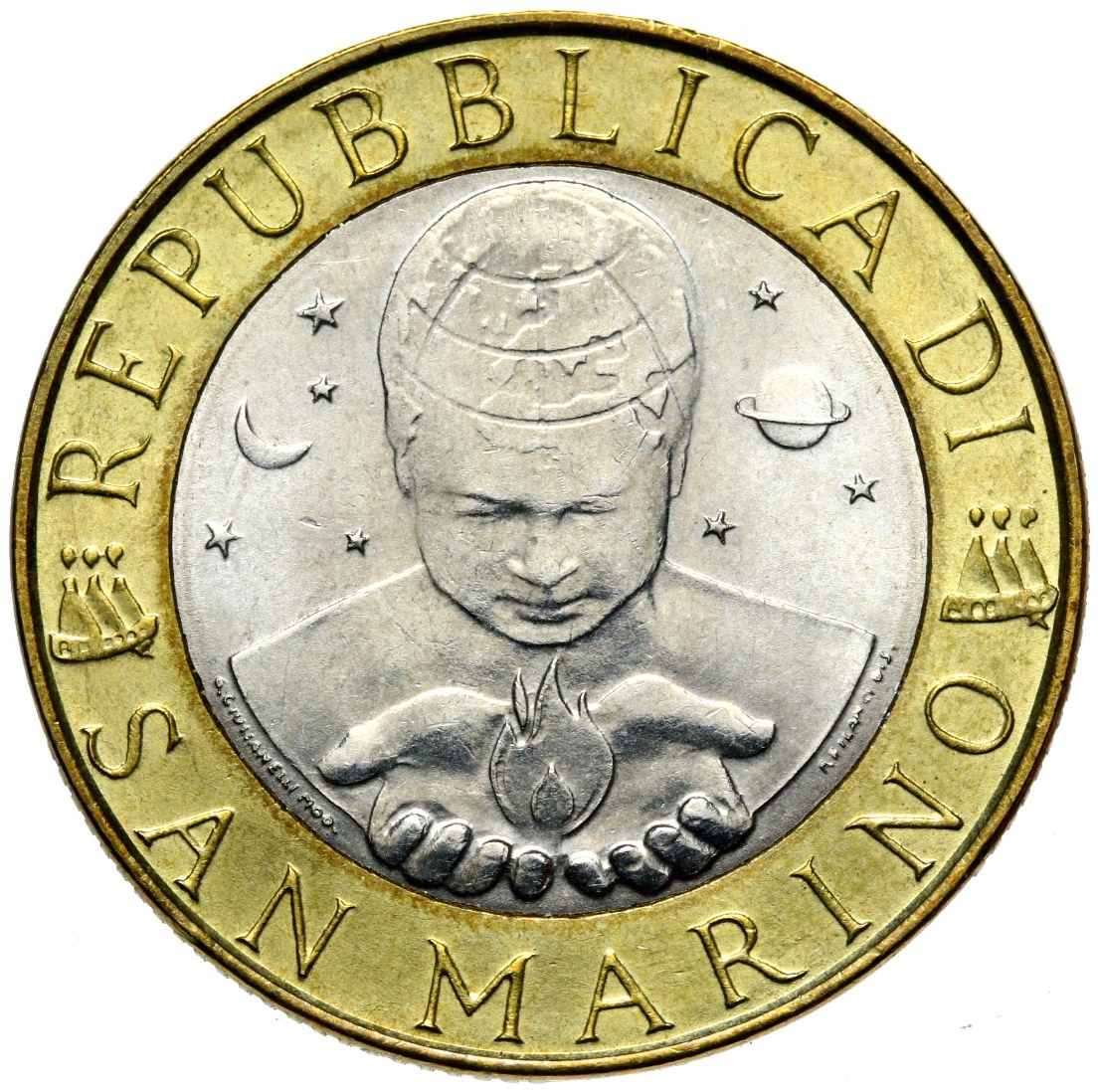 + Сан-Марино - 1000 лир 2000 ГОЛУБЬ - БИМЕТАЛЛ - СОСТОЯНИЕ!