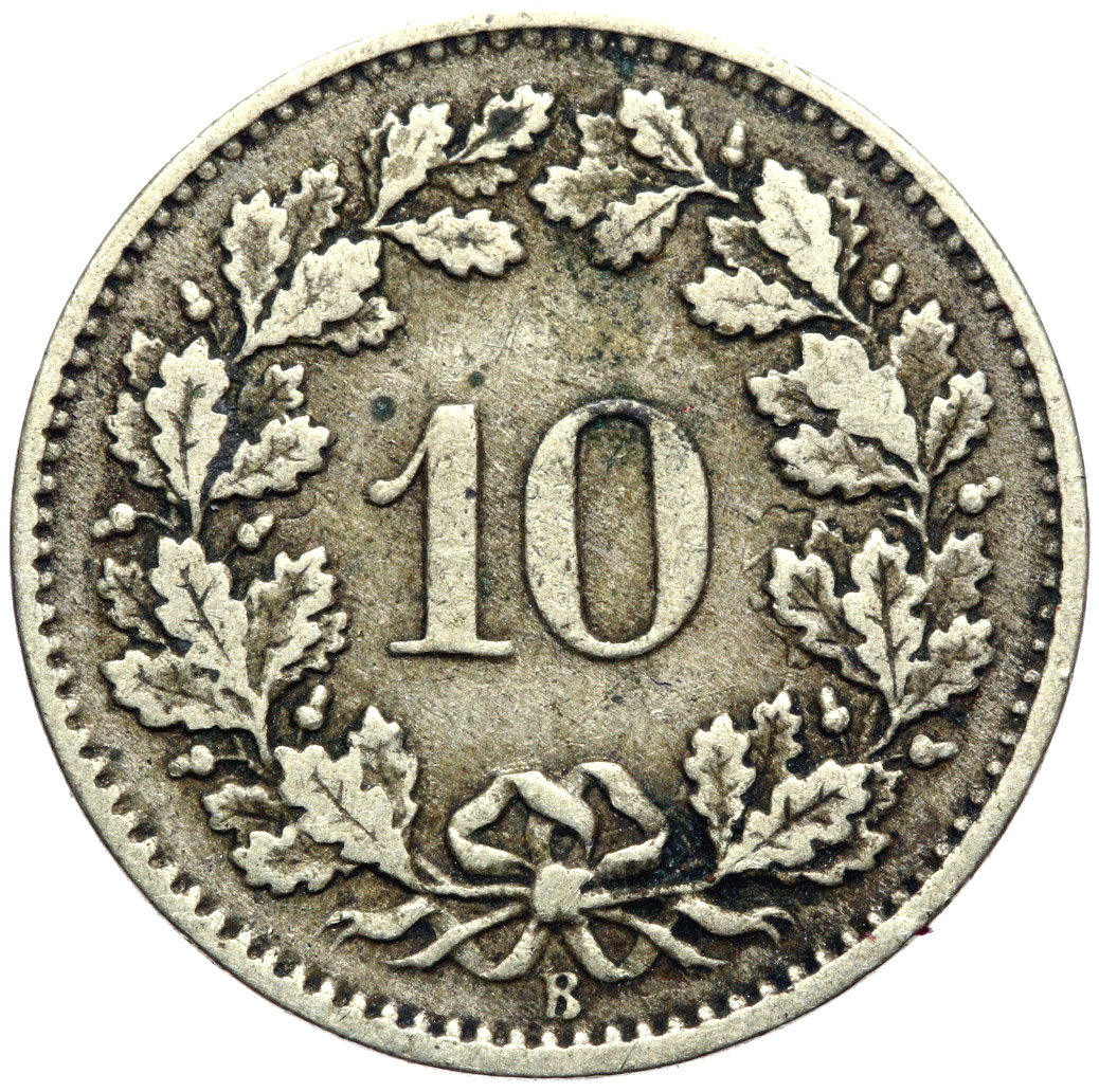 + Швейцария - 10 Rappen 1876 B - Bern - Rarer - состояние!