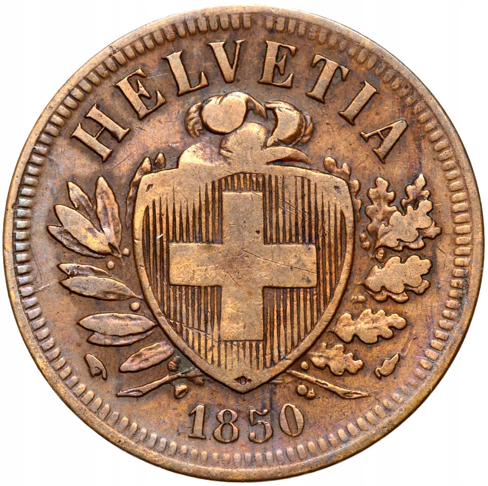 + Швейцария — 2 Раппена 1850 А — СОСТОЯНИЕ!