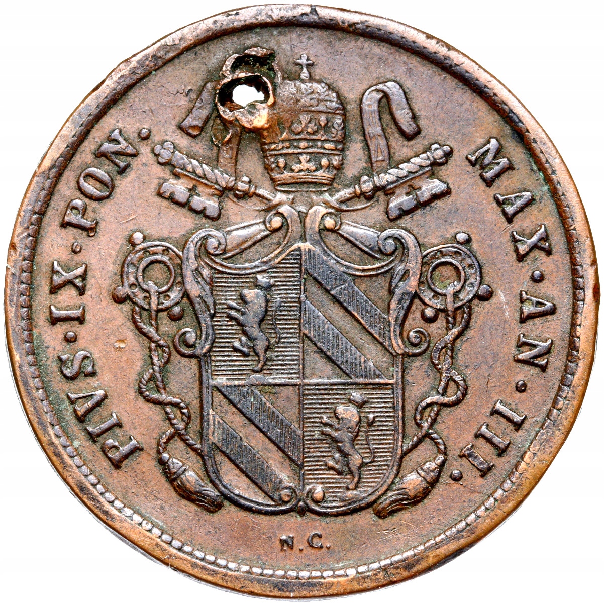 + Ватикан - Папа Пій IX - 2 Baiocchi 1848 Рим ANNO III РІДКІСНІСТЬ!