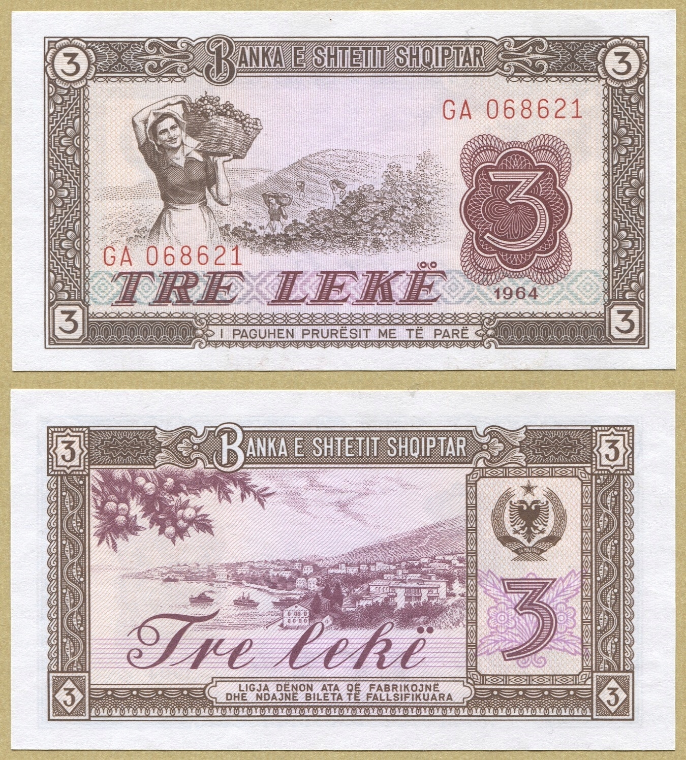 -- АЛБАНІЯ 3 ЛЕКЕ 1964 GA P34a UNC