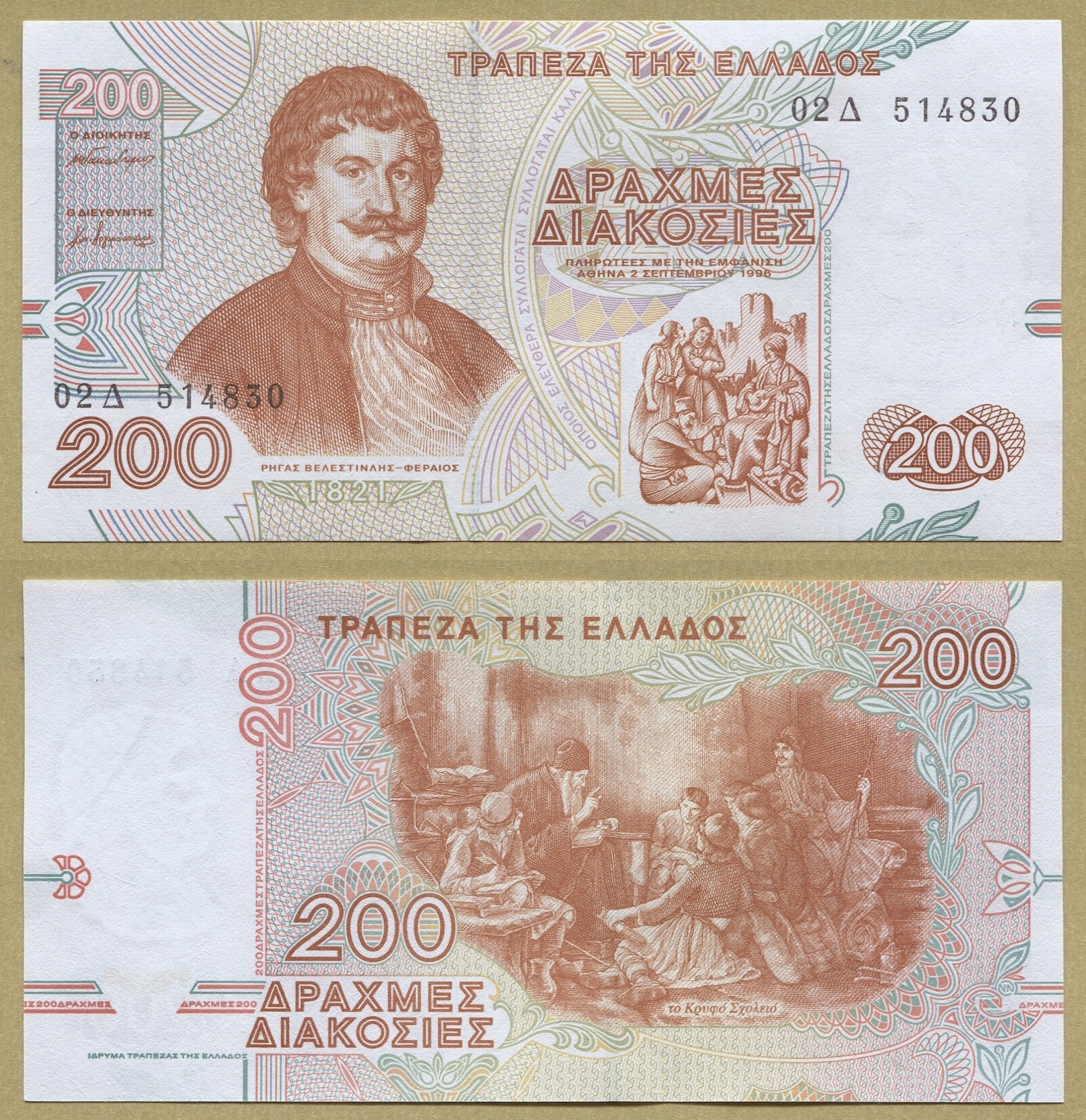 -- ГРЕЦИЯ 200 ДРАХМ 1996 02D P204a UNC