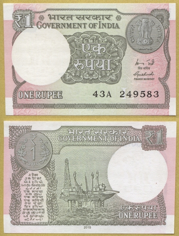 ИНДИЙСКАЯ 1 РУПИЯ 2015 года серии 43A