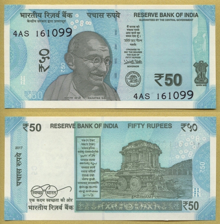 ИНДИЯ 50 РУПИЙ 2017 серии 4AS