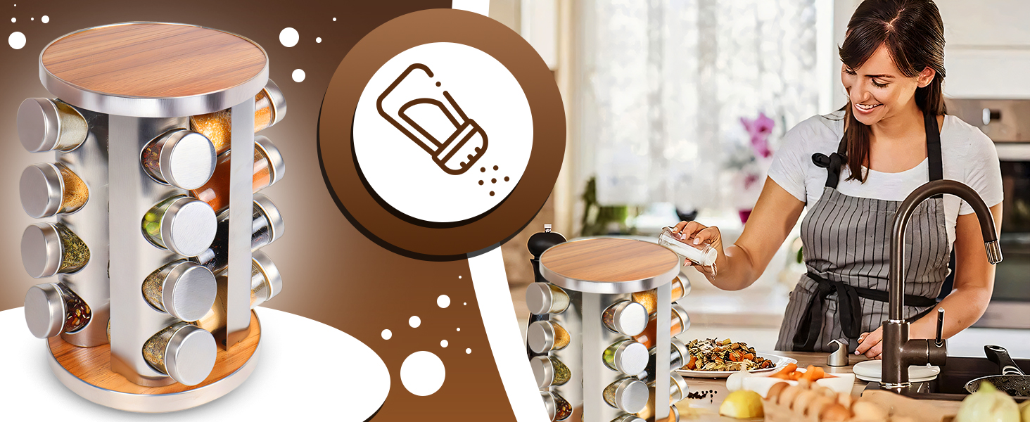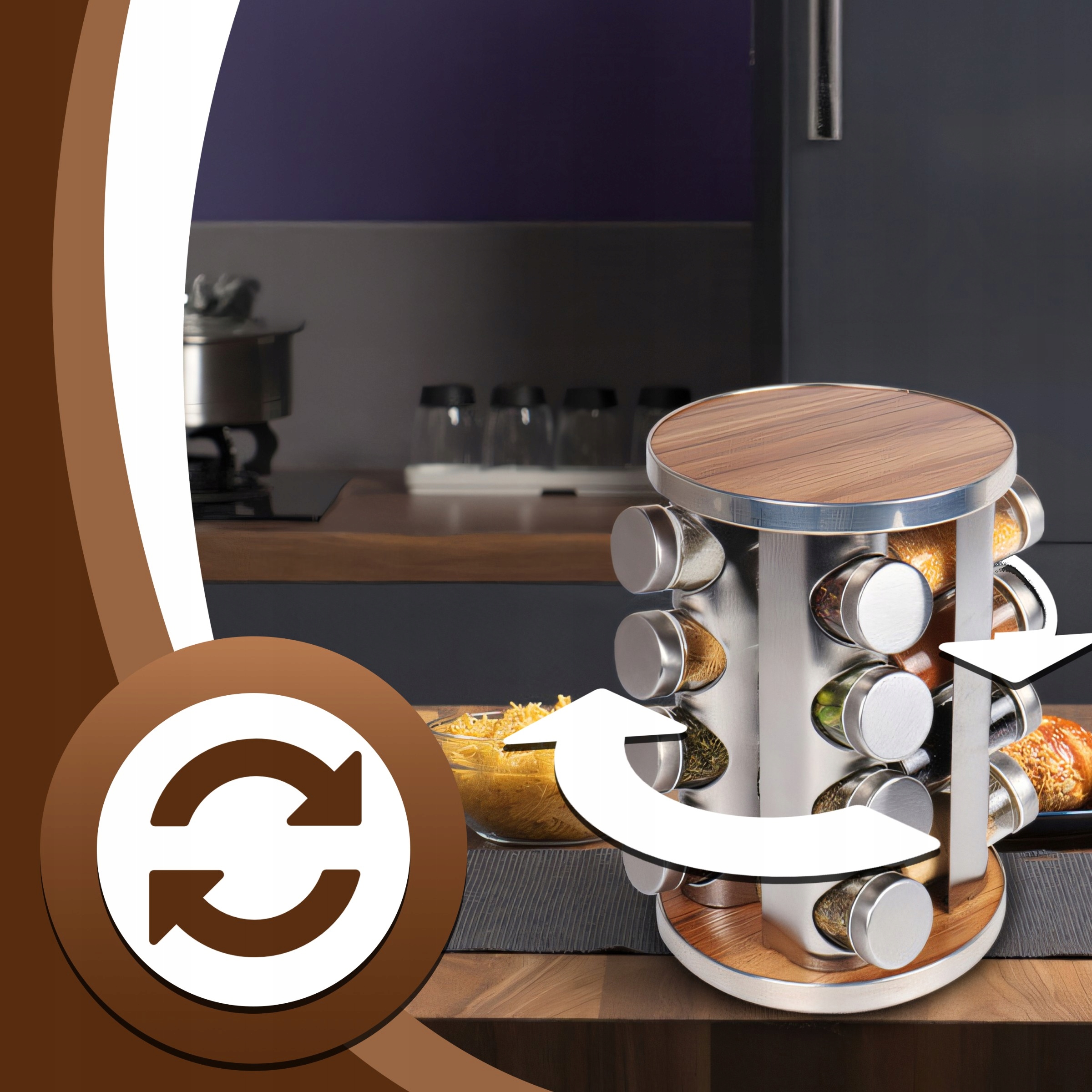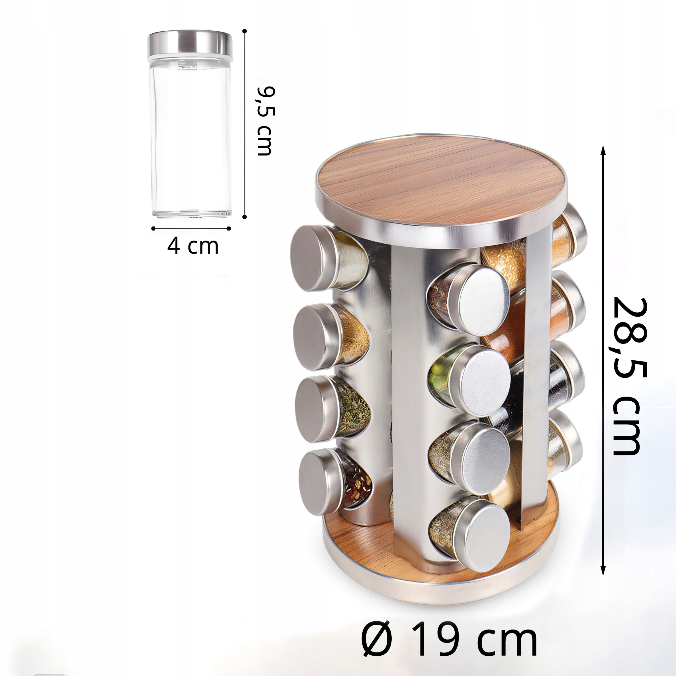 ВРАЩАЮЩАЯСЯ ПОДСТАВКА ДЛЯ КОНТЕЙНЕРОВ ДЛЯ СПЕЦИЙ, НАБОР БАНОЧЕК ДЛЯ СПЕЦИЙ, 16 ШТ.