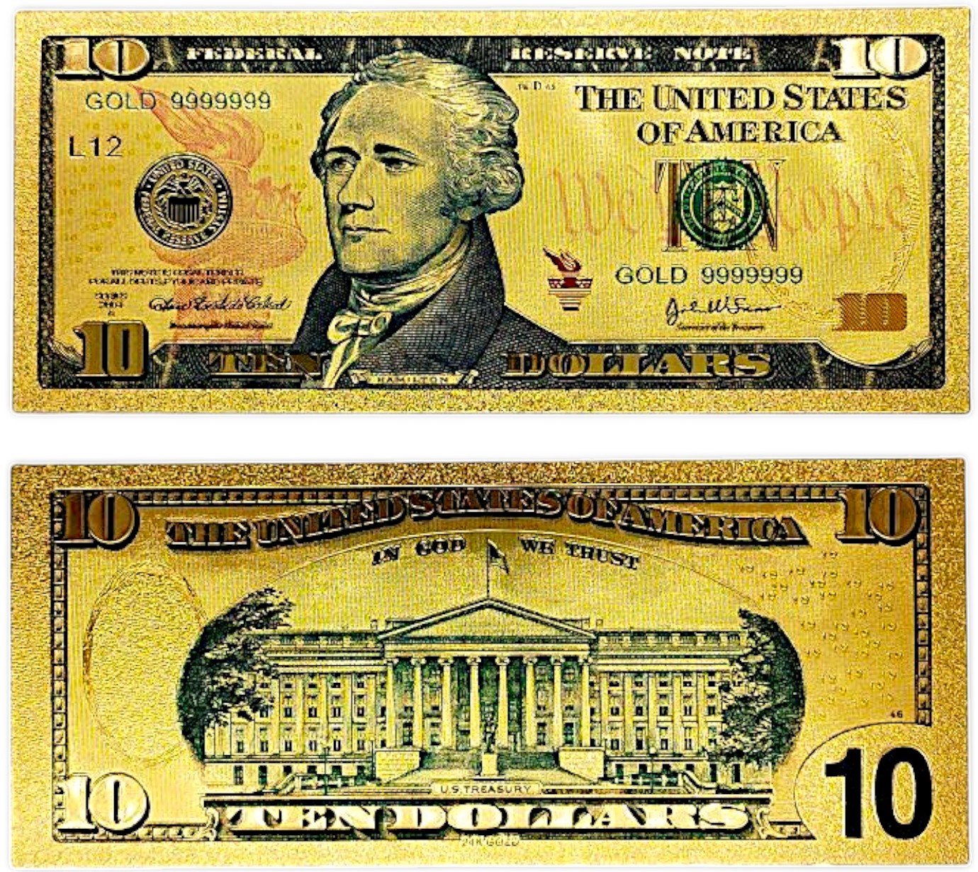 Вы ищете необычное украшение, которое привлечет внимание и добавит немного роскоши в любой интерьер? Или, может быть, вы хотите дать кому -то оригинальный подарок, который произведет впечатление? Золотая копия американской банкноты 10 долларов является отличным выбором для коллекционеров, любителей нумизматики и всех, кто ценит стильные акценты