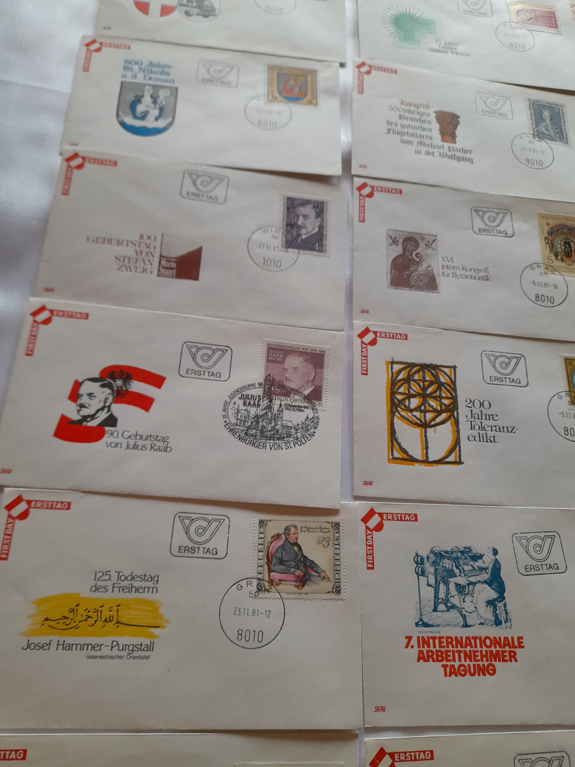 № 2. Ценная коллекция около 40 FDC Австрии. Уникальные предметы. Ценности в различных состояниях. Все показано на картинках. Условие, как на картинках.