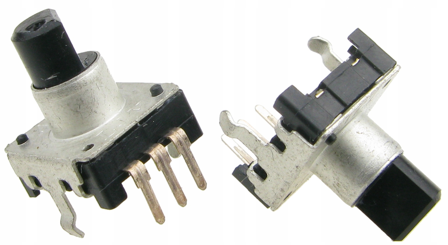 Поворотный энкодер/импульсный датчик без кнопки. 24 импульса/полное вращение, без блокировки (можно вращать «бесконечно»). Диаметр ручки: 6мм, усеченная ось, фланец без резьбы, длина 5мм и диаметр 7мм, длина оси + фланец: 10мм, общая высота от основания 14мм, штифты для печати, шаг между сигнальными штифтами 2,5мм, основание 13х13,5мм. Цена за 1 шт.