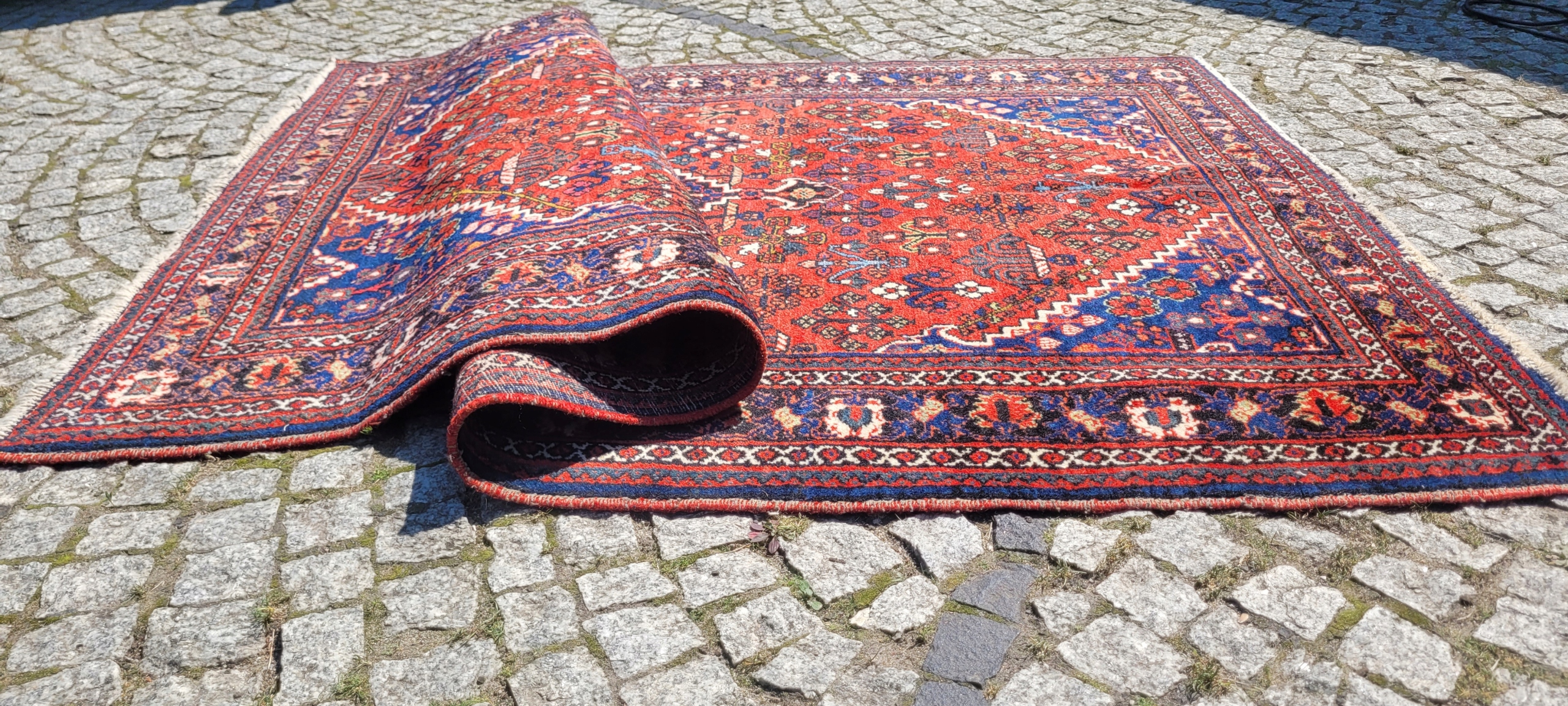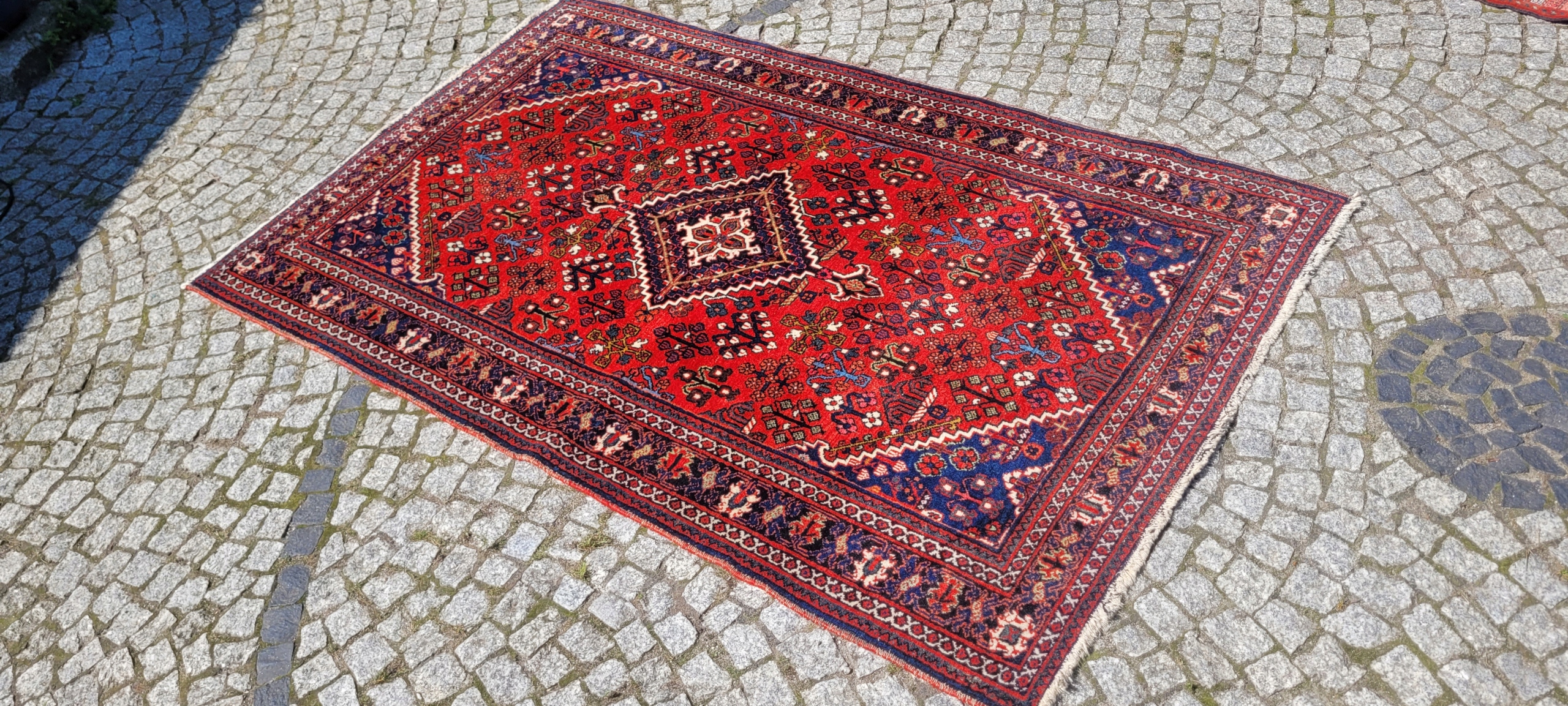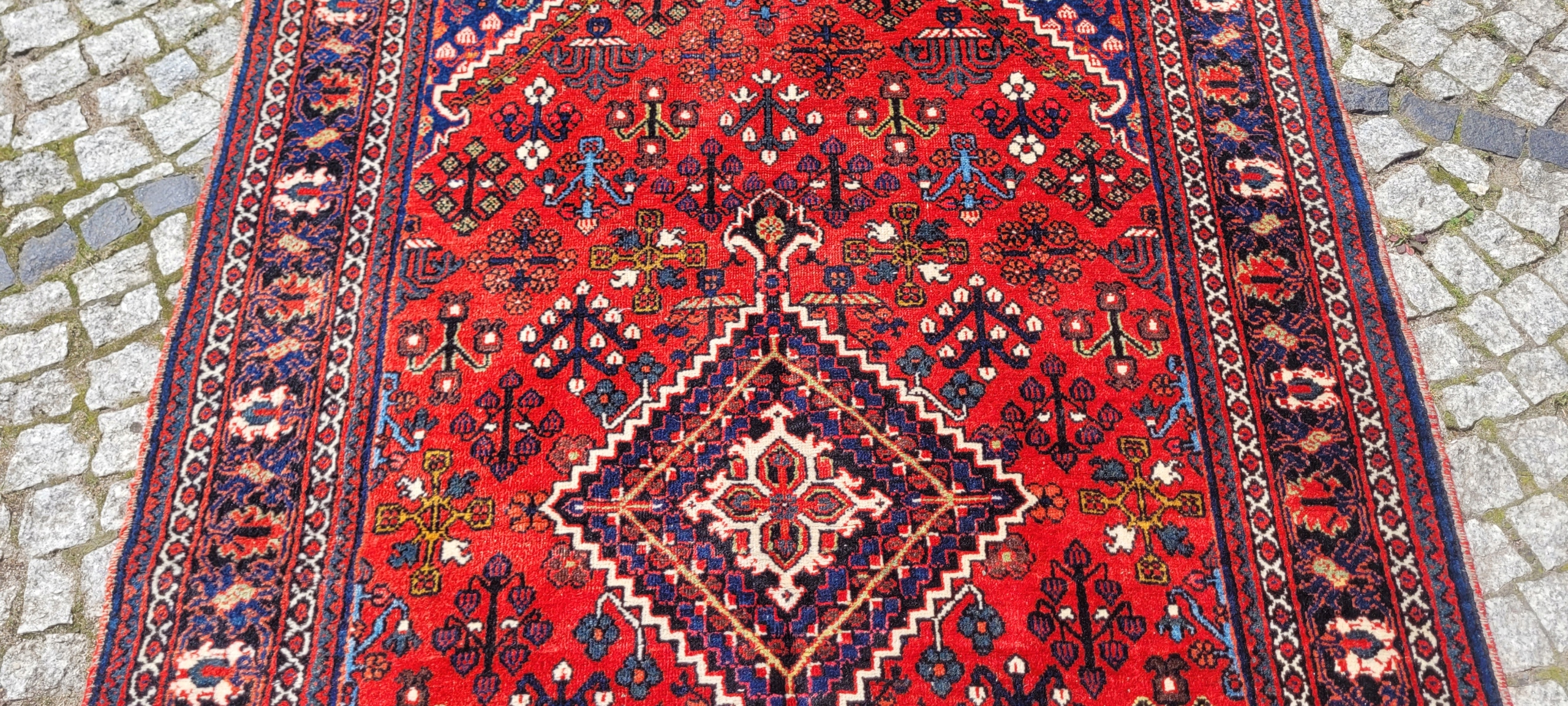 Старый персидский ковер Джушеган. Сплетено вручную из шерсти высочайшего качества. Для него характерен компактный, приятный на ощупь, блестящий флис, красивые цвета и узоры. Состояние очень хорошее, видно на фотографиях.