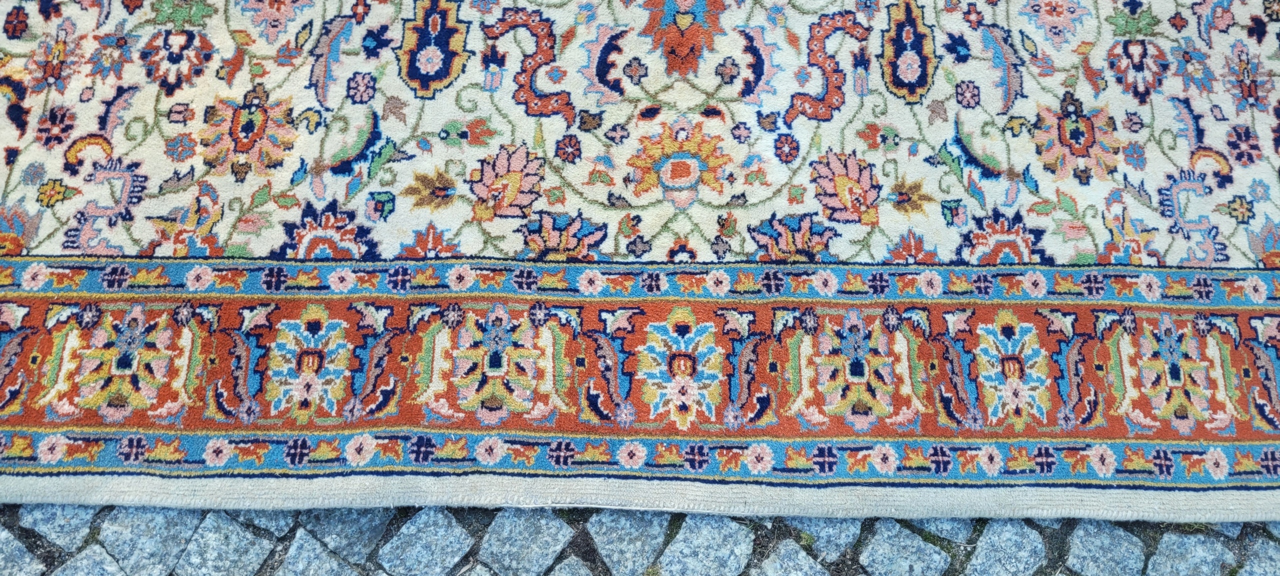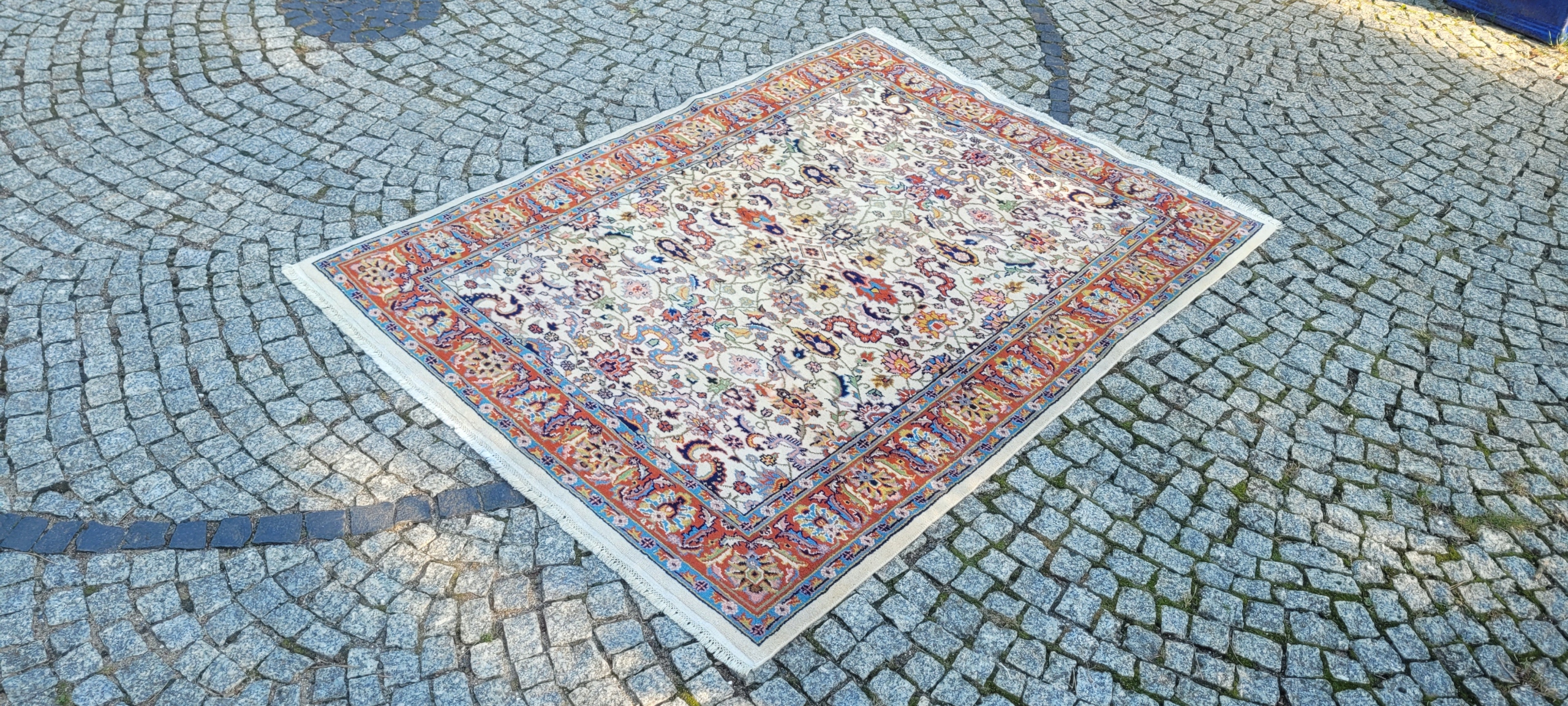 Это очень качественные ковровые классы. Он прочный, долговечный. Узоры могут состоять из центрального медальона, окруженного арабесками, плакучими ивами или кипарисами. Другой мотив — четыре времени года, показывающий жизнь персидских земледельцев весной, летом, осенью и зимой. Универсальные узоры делают этот ковер подходящим для многих интерьеров.