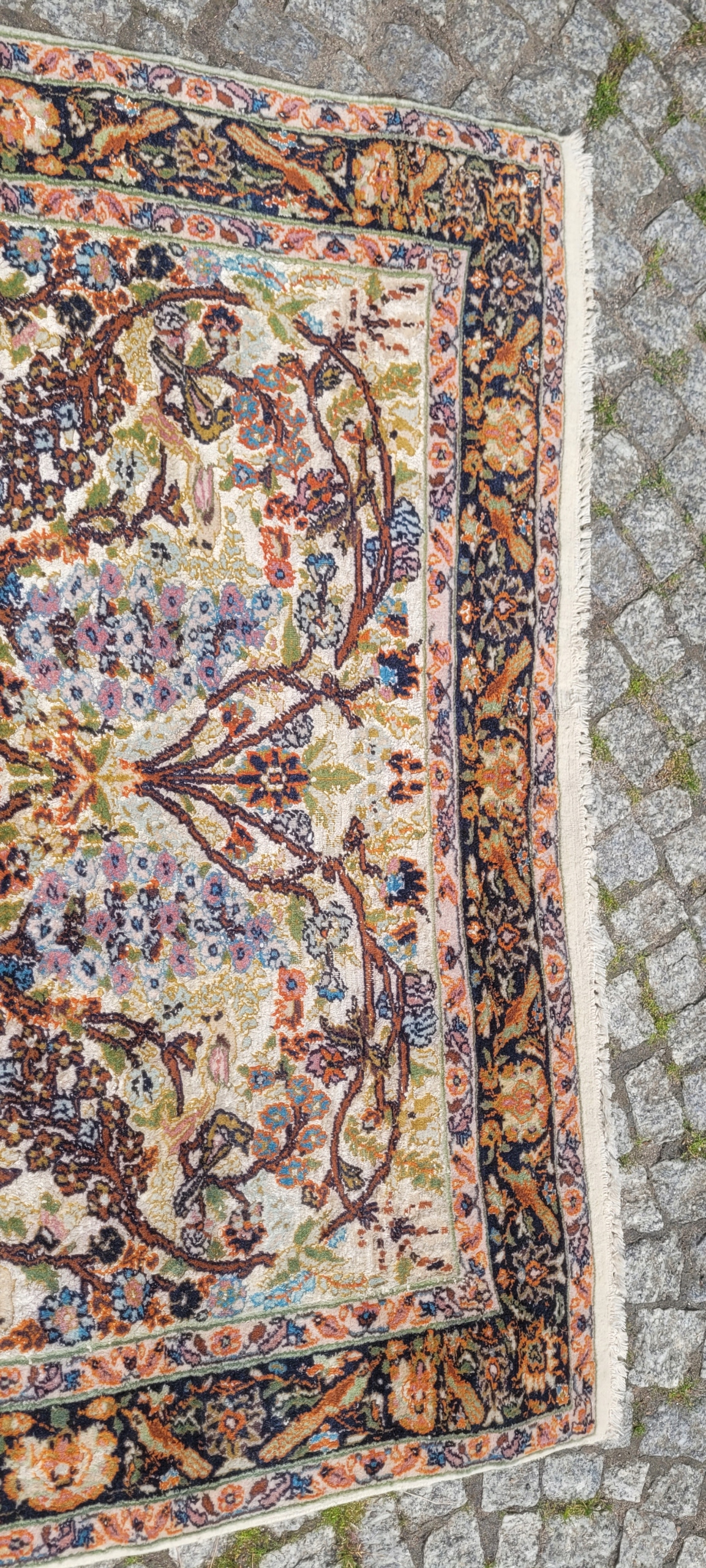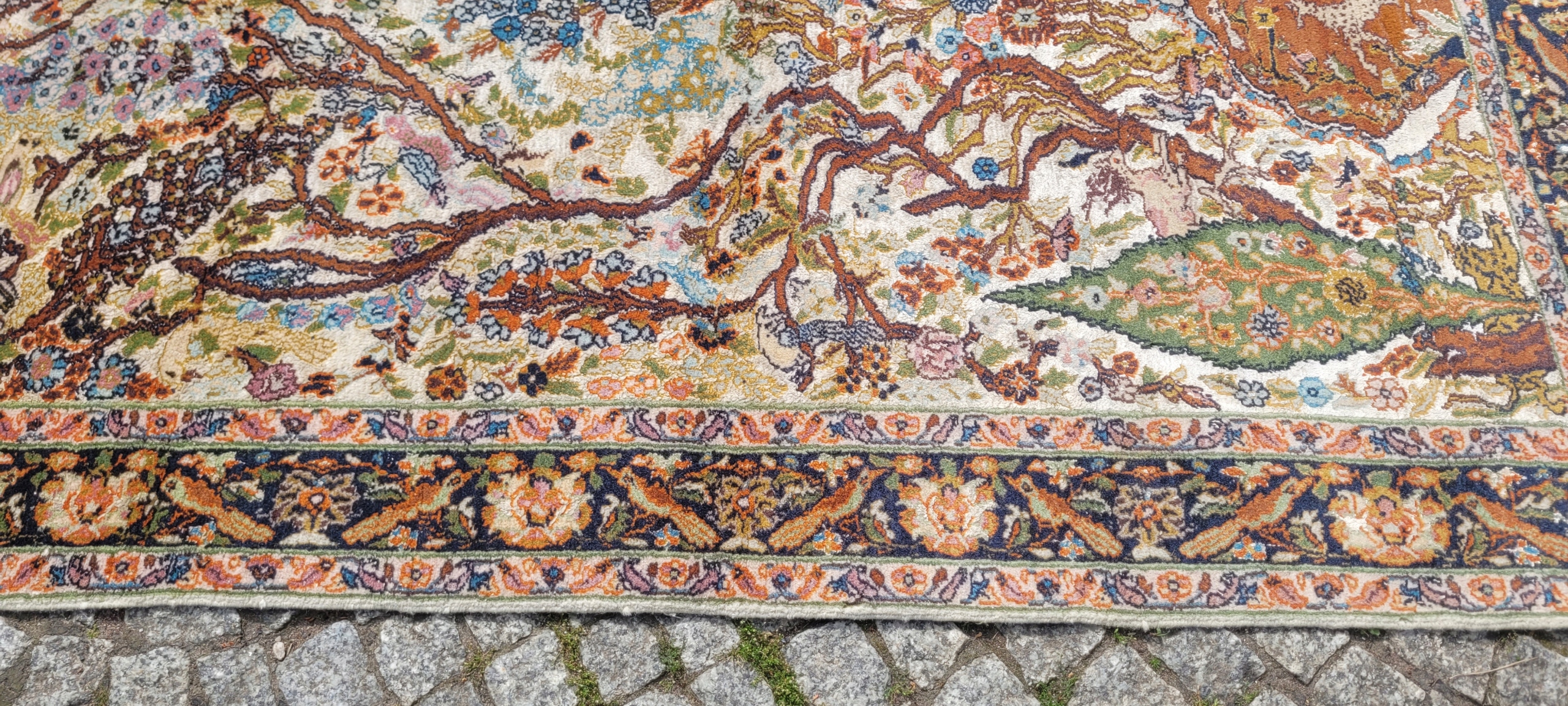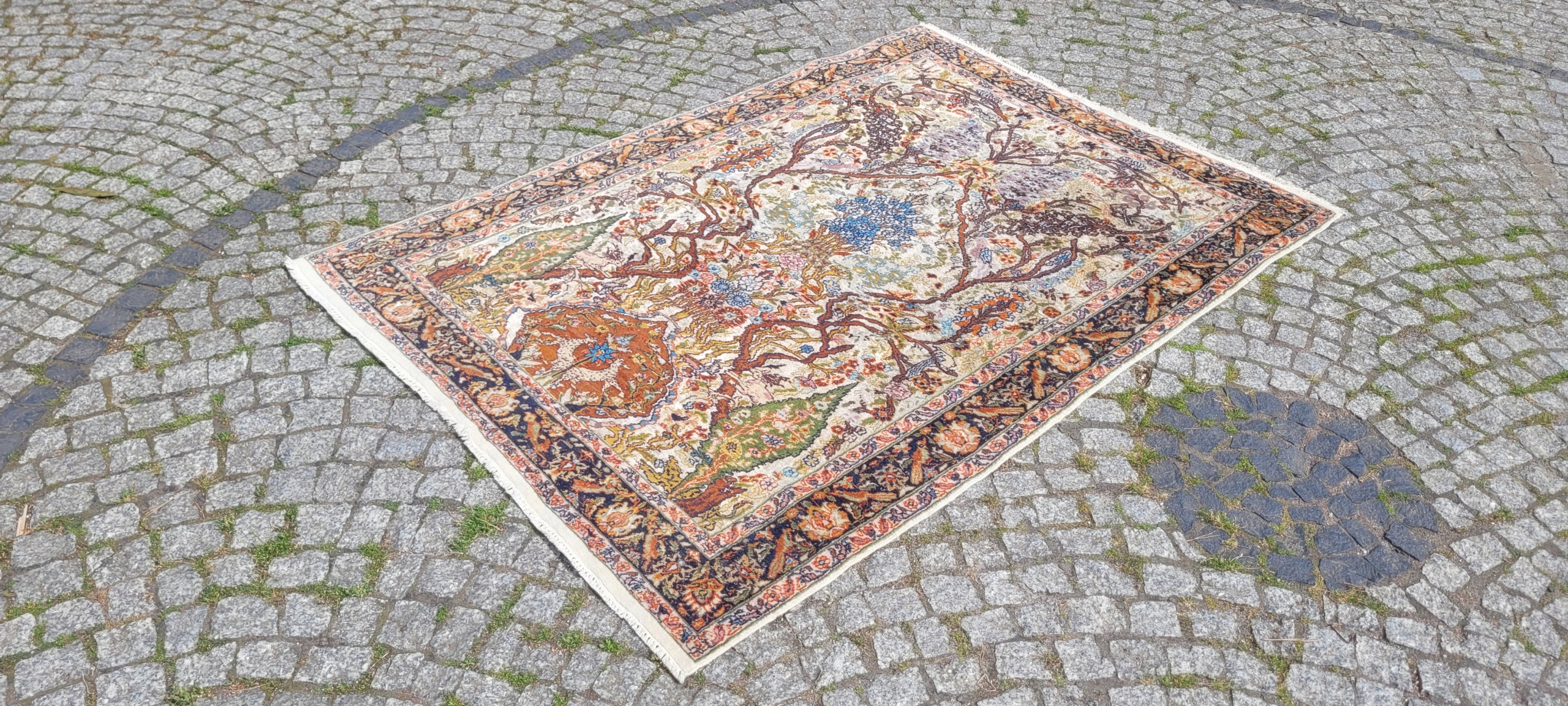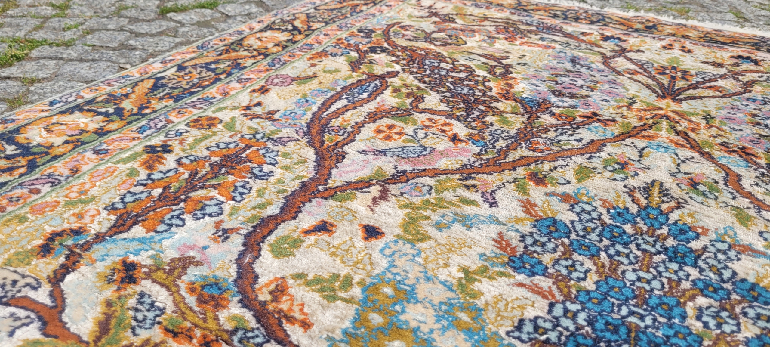 Ковер гом. Сплетено вручную из шерсти и шелка. Для него характерен компактный, приятный на ощупь, блестящий флис, красивые цвета и узоры. Состояние хорошее, видно на фотографиях.