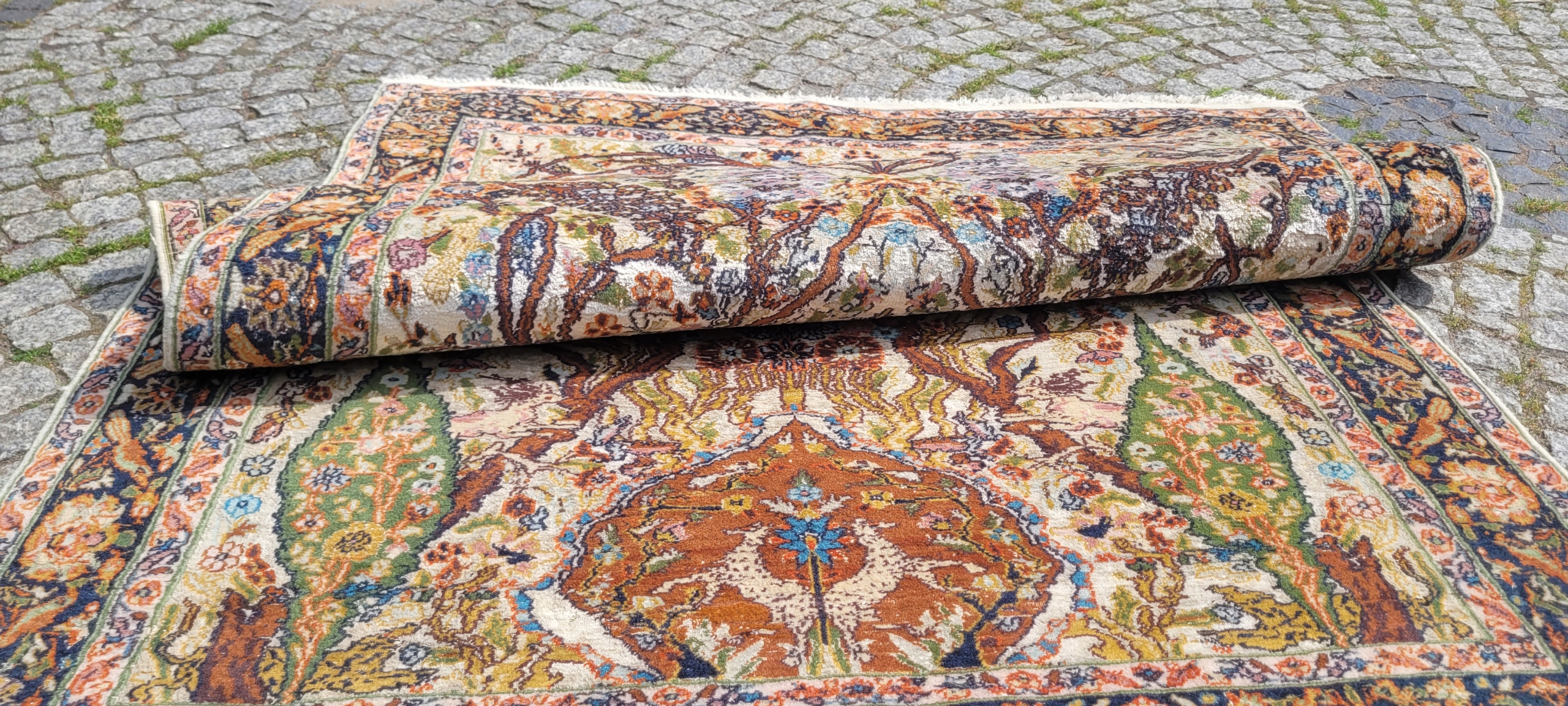 -70% ЗООМОРФНЫЙ ПЕРСИДСКИЙ КОВЕР GHOM ГЛЯНЦЕВЫЙ, ТКАНЫЙ ШЕЛК 122/180 цена!