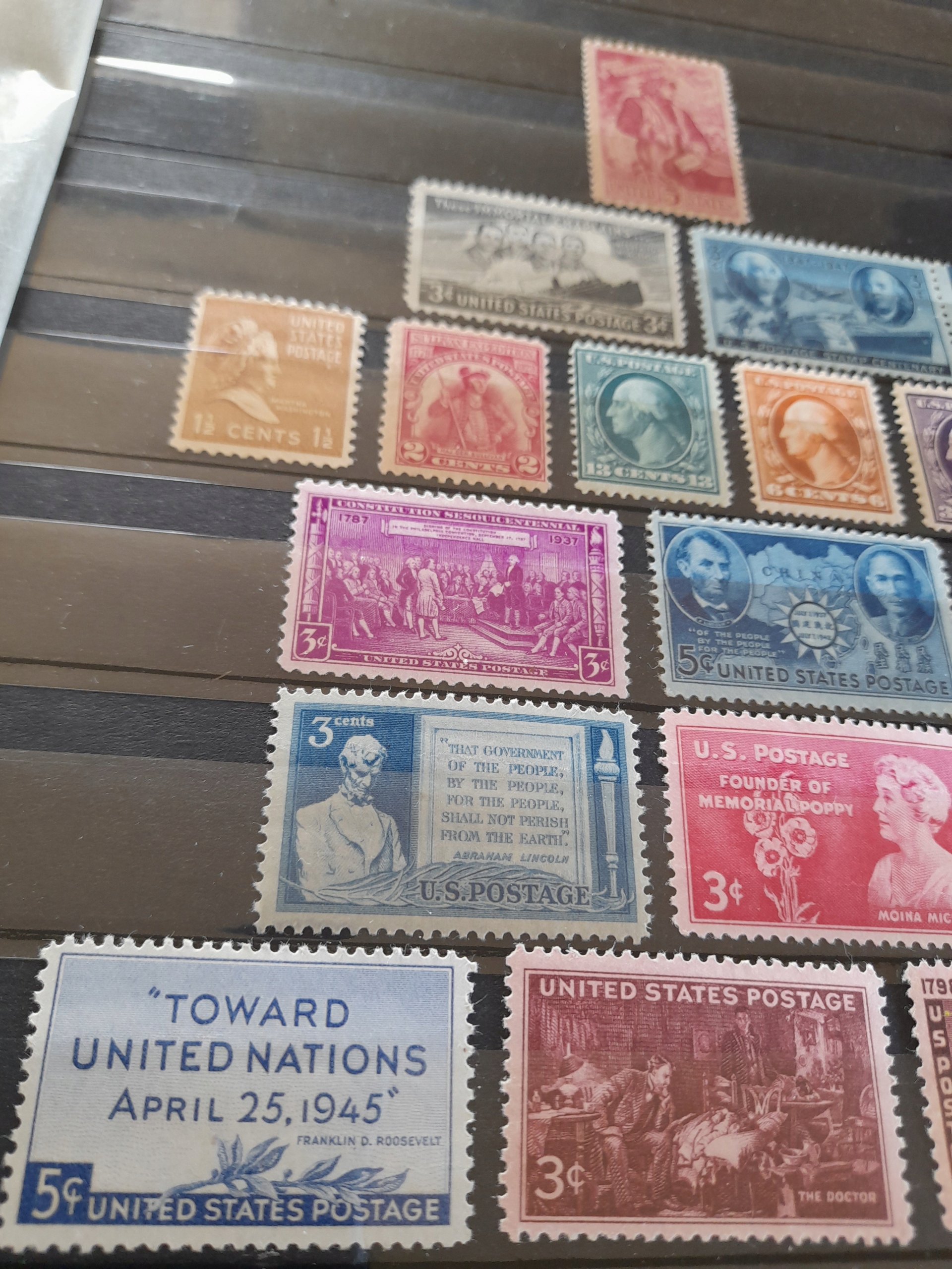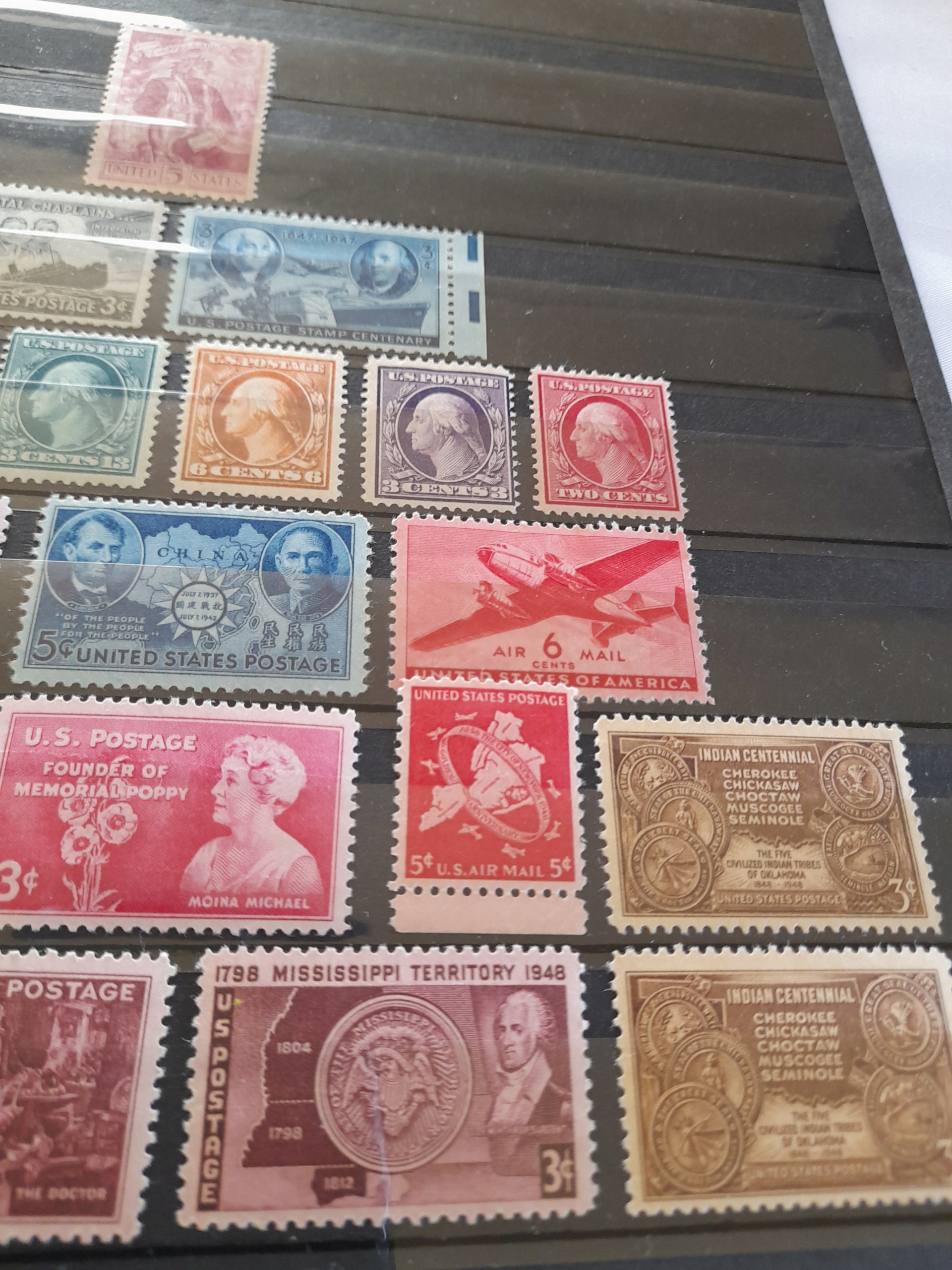 № 8. США. Ценный набор марок, не подготовленных с клеем на карте A4. Значения в защитных полосках. 2 или 3 марки имеют слегка поврежденный клей. Все показано на картинках. Условие, как на картинках.