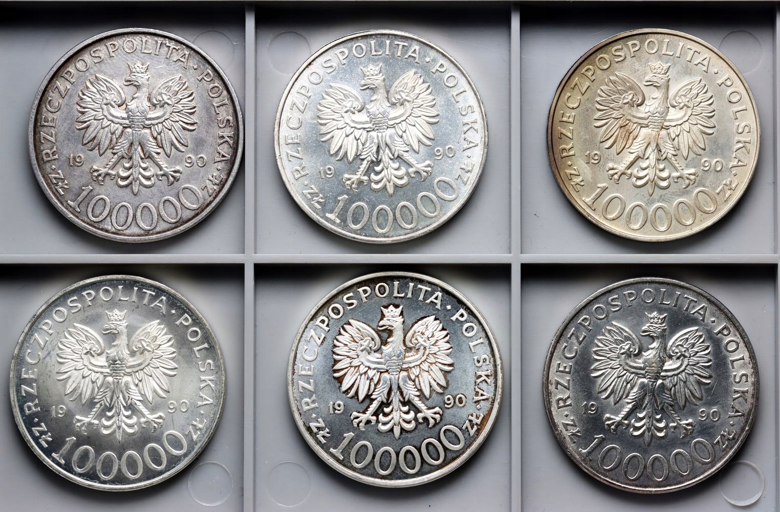 # AJ# 232. Польша, Третья Польская Республика, установила 6 x 100 000 Zlotys Solidarity, тип A