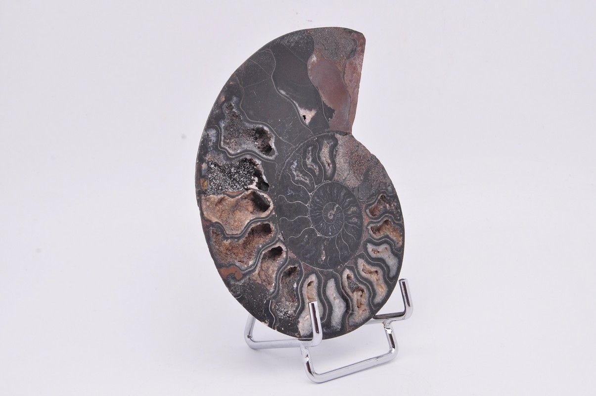 Аммониты, аммониты (Ammonoidea) — подкласс вымерших головоногих моллюсков (Cephalopoda), обычно с симметричной плоскоспиральной раковиной. Некоторые типы имели необычную форму, например. прямая оболочка, вертикально закрученная спираль или спираль с бесконтактными витками. Они встречаются в породах морского происхождения, датируемых от девона до конца мела. Некоторые отдельные камеры открыты и заполнены богатым набором бежево-серых и коричневых кристаллов кальцита, с перегородками между каждой камерой.