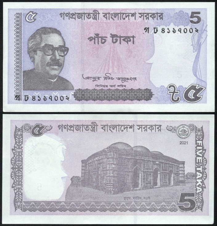 $ Бангладеш 5 ТАКА П-64Ad UNC 2021