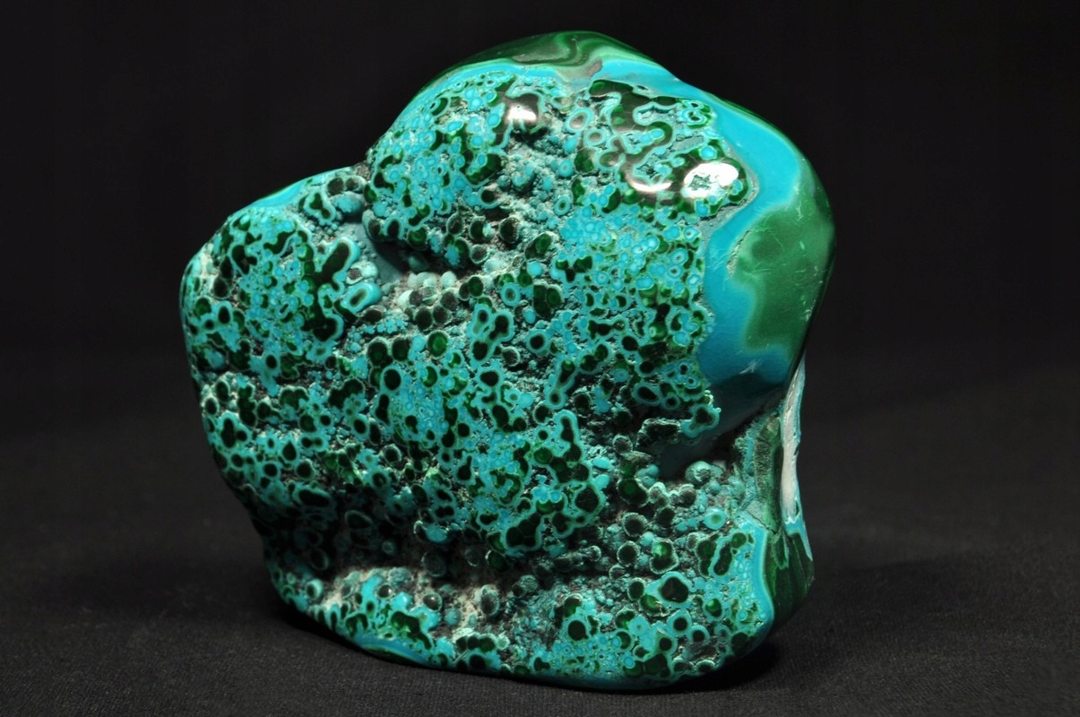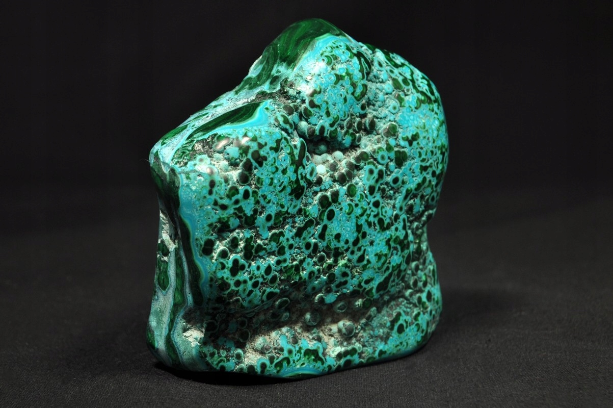 * ХРИЗОКОЛА С МАЛАХИТОМ СТОЯЩИЙ ОБРАЗЕЦ, ПОЛИРОВАННЫЙ, ВРУЧЕННЫЙ №. 3