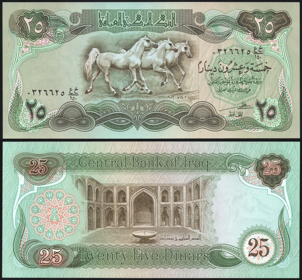 $ IRAQ 25 DINARS P-72A UNC 1982