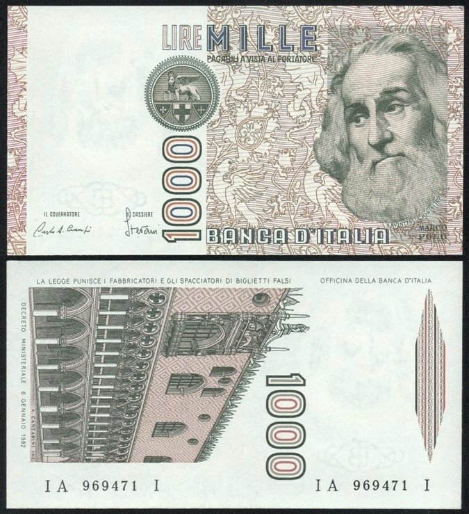 $ Італія 1000 LIRE P-109a UNC 1982