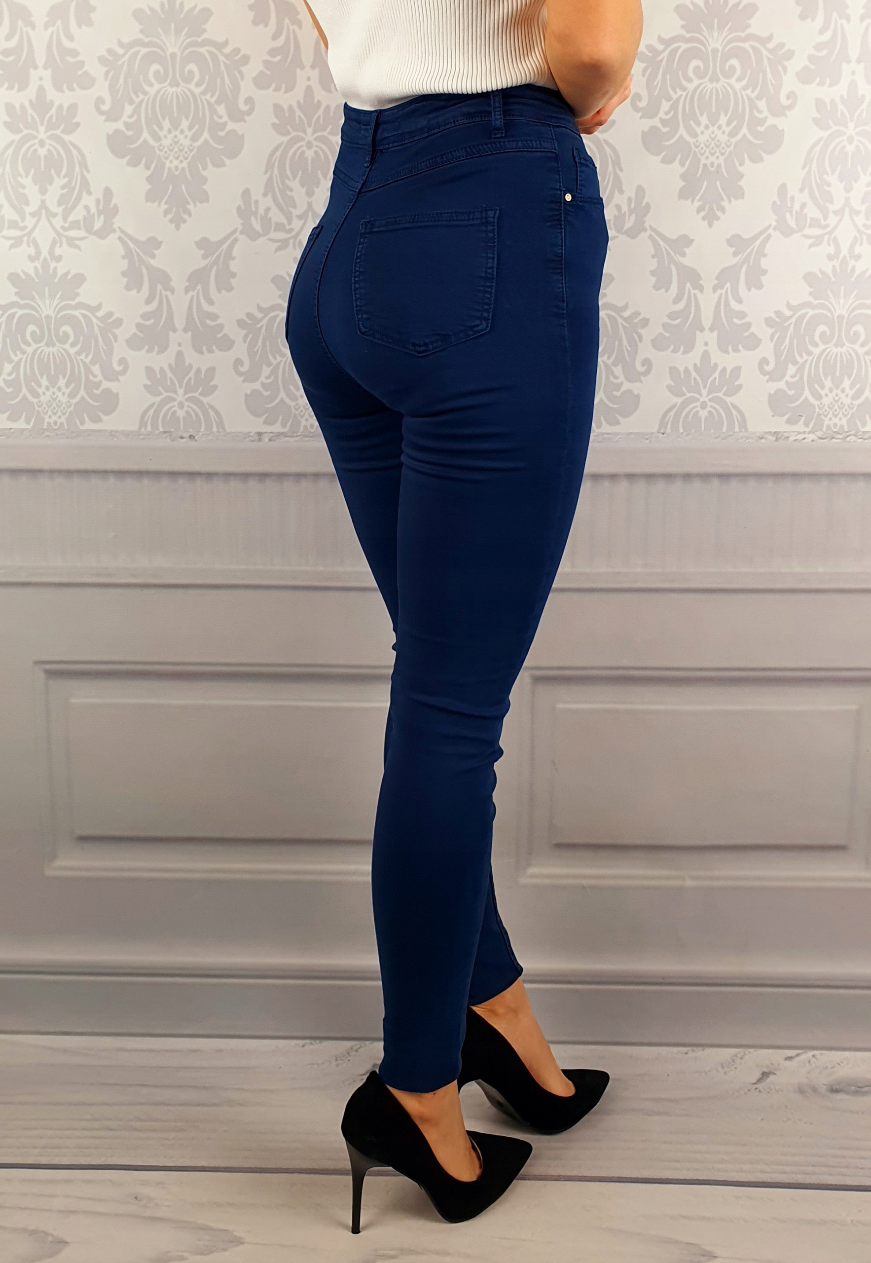 Отличные классические брюки темно-синего цвета с завышенной талией. Отлично подходят для спортивной обуви, но они также идеальны в сочетании с обувью на высоком каблуке, поскольку благодаря своей универсальности подходят практически к любому стилю. Гибкий материал подчеркивает женскую фигуру. Брюки приталенные и тянутся. Подчеркните свои женственные формы! Сделайте свой повседневный образ уникальным. Брюки имеют карманы с обеих сторон.