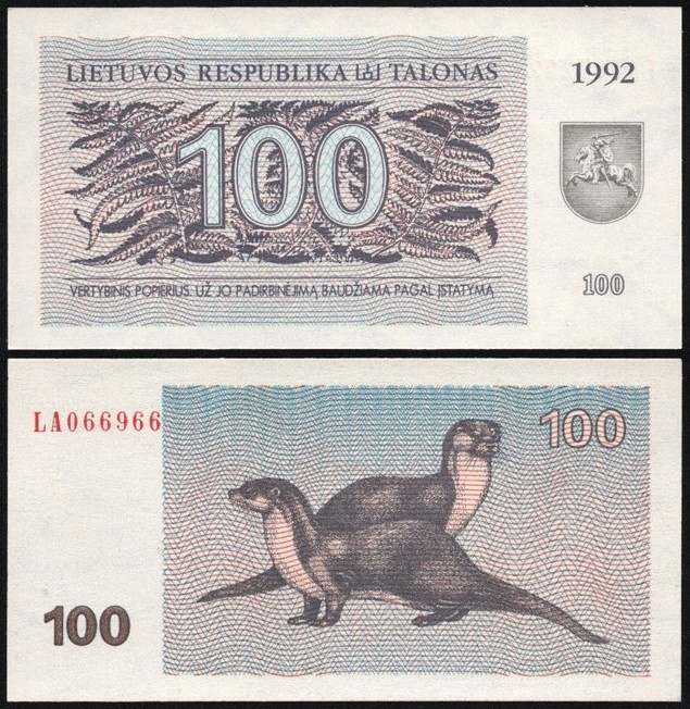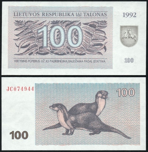 $ Lithuania 100 Talonas P-42 UNC 1992