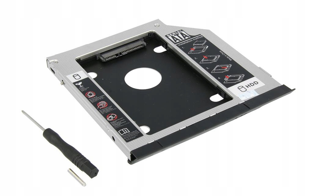 Алюминиевый карман для 2,5-дюймового жесткого диска, который устанавливается вместо оптического привода CD/DVD – такое решение позволяет
