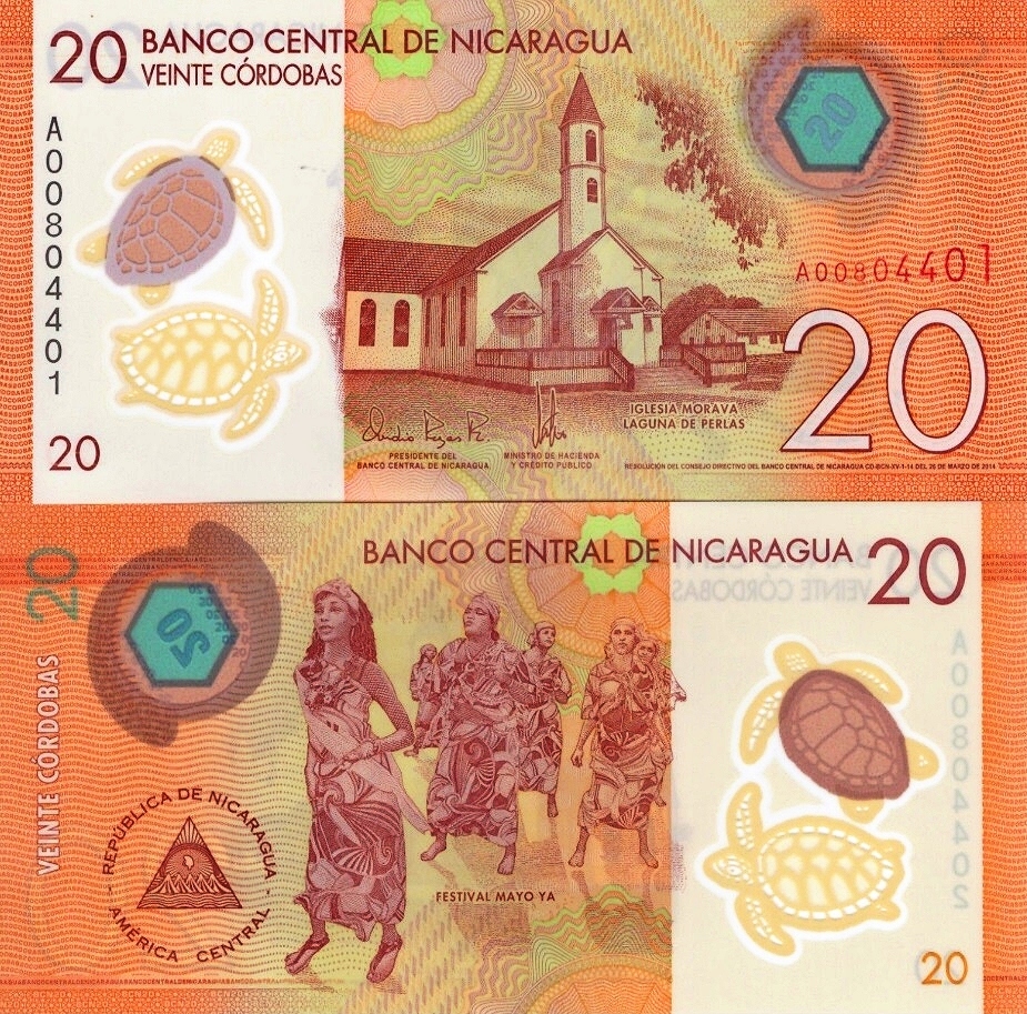 # Никарагуа - 20 Cordobas - 2019 - P -210A- UNC - Полимер